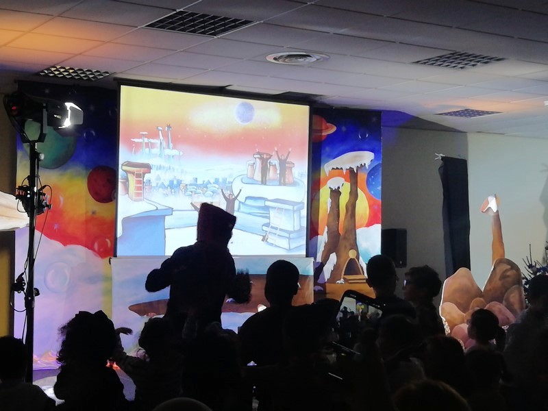 C'est tout fébriles qu'ils ont pris place devant la scène installée dans la salle de conférence, accompagnés de leur maman pour la plupart, ou de leurs grands-parents. Quelque 170 enfants étaient attendus et accueillis par les animatrices du centre social pour assister à une représentation donnée par la compagnie La petite Lune, spectacle intitulé « Le petit ramoneur ». Mais avant cela un atelier « Lettre au Père Noël » leur a permis de se rassembler autour d'une table pour écrire leur plus belle lettre, les uns découpant dans des catalogues les jouets de leurs rêves, les plus grands pouvaient s'exprimer autrement.