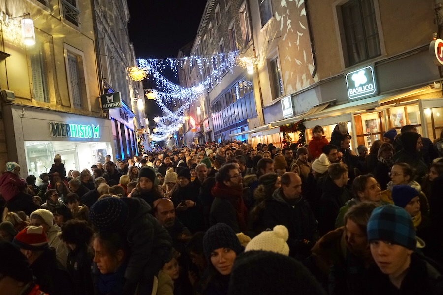 Marée humaine de la place de la Barre jusqu'à l'esplanade Lamartine ce soir pour lancement du festival Contes et lumières !