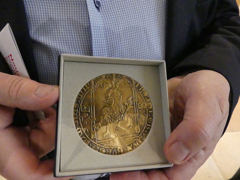 Après la signature de la convention 2025-2028, afin de marquer symboliquement la qualité et la constance du partenariat, le directeur régional a remis au maire et à son adjoint à la culture et au patrimoine Hervé Reynaud, la médaille de l'Inrap.