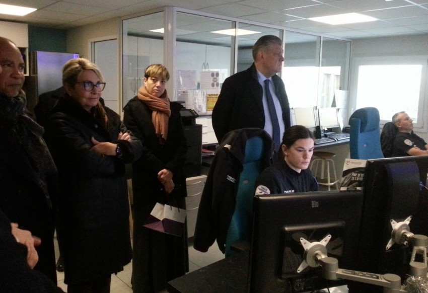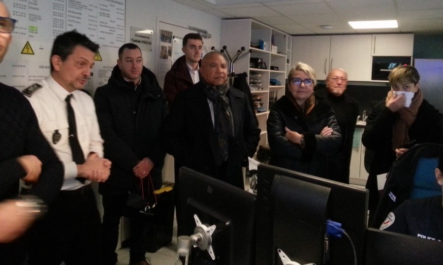 Cette année, la traditionnelle visite a debuté à 16h30 au commissariat de police de Mâcon. Le maire de Mâcon, Jean-Patrick Courtois, la maire de Charnay-lès-Mâcon, Christine Robin, leurs adjoints, le préfet de Saône-et-Loire Dominique Dufour et sa directrice de cabinet Salwa Philibert ont eté accueillis au centre de supervision urbain (CSU) par le directeur départemental de la police nationale Thomas Kieffer. Situé au premier étage du commissariat, ce poste central du département permet de suivre des images des rues de Mâcon, Montceau-les-Mines et Chalon-sur-Saône simultanément sur une trentaine d'écrans. À terme, le CSU possèdera des images de toutes les plus grosses communes de Saône-et-Loire. Cette nuit, une vingtaine de policiers (BAC, brigade de nuit et agents de permanence) seront chargés de veiller à la sécurité des Mâconnais.