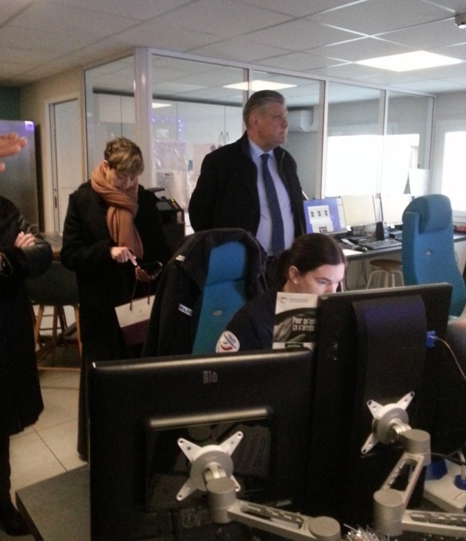 A 18h30, les élus et le préfet ont été reçus par le colonel Lukic Tomica, commandant du groupement de gendarmerie de Saône-et-Loire, au centre d'opération et de renseignement de la gendarmerie (CORG 71). Ce centre installé à Charnay gère 110000 appels par an. 20 % des appels se traduisent par une intervention de la gendarmerie (qui couvre 97% des communes du département, soit 347000 habitants). Ce soir, 4 opérateurs assureront la permanence au CORG et s'attendent à tout type de situation au cours de la nuit.