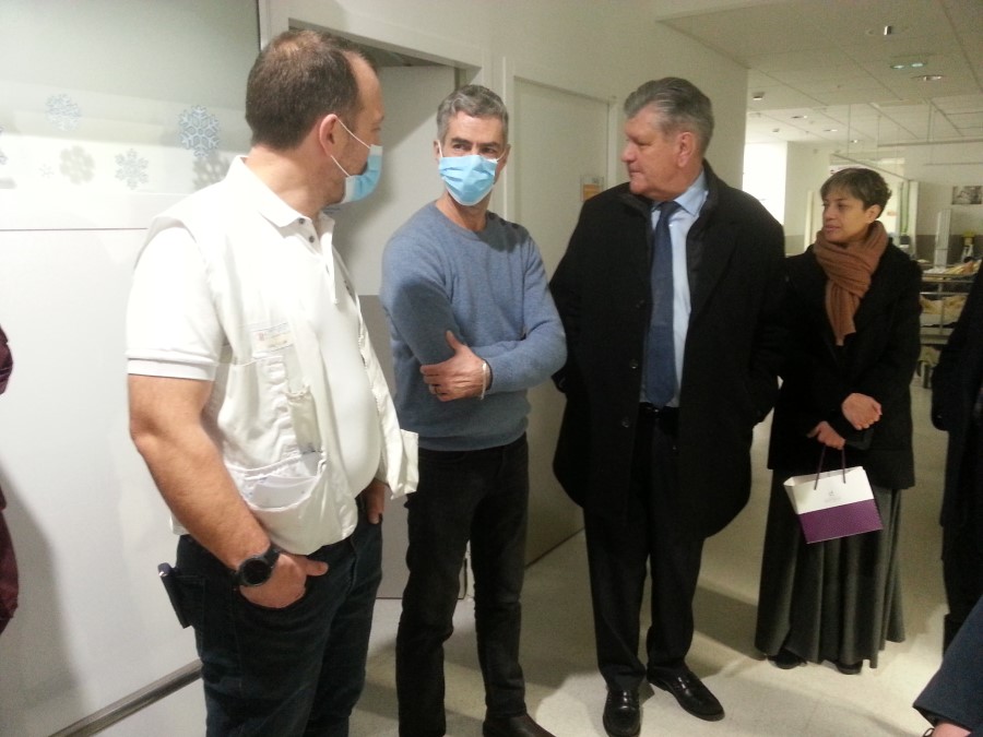 La visite aux travailleurs et bénévoles de la Saint-Sylvestre s'est terminée aux urgences de Mâcon. Cette nuit, 3 pratriciens, 2 internes, 7 paramédicaux et une infirmière en pratique avancée recevront le public. Le directeur de l'hôpital, Richard Dalmasso, le chef des urgences, Frédéric Chapalain, ainsi que tout le personnel des urgences, feront tout pour que personne ne passe une nuit néfaste sur un brancard en cherchant au maximum à faire dormir les patients dans un autre service de l'hôpital, avant de les orienter définitivement vers le bon service le lendemain matin.