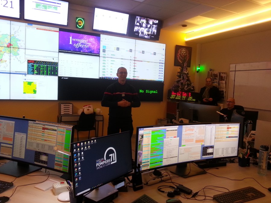 Le directeur départemental adjoint du SDIS 71, le colonel Emmanuel Vidal, a ensuite présenté pour une dernière fois le salle du centre opérationnel des sapeurs-pompiers de Saône-et-Loire (CTA-CODIS) avant l'installation d'un nouvel outil numérique operationnel en septembre 2026. Ce soir, la permanence au CTA-CODIS sera assurée par l'officier commandant Frédéric Tisserant, un chef de salle opérationnelle et 4 opérateus de salle, ce qui est le dispositif standard toute l'année. Cette nuit, 500 pompiers seront disponibles dans les 9 casernes de Saône-et-Loire en garde (300 autres pompiers d'astreinte sont mobilisables).