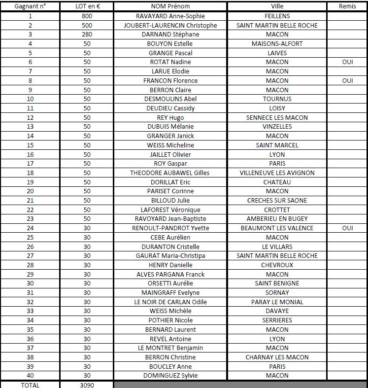 En cas d’absence, la liste des gagnants sera diffusée sur le site Internet de la Ville et sur celui de MACON Tendance, à partir du 09 janvier 2026.