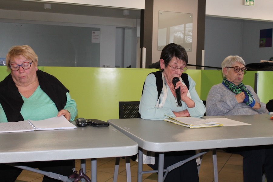 Mme Riondy Nicole, présidente, est entourée de Mme Benoit France, trésorière, et de Mme Pacros Martine, secrétaire.