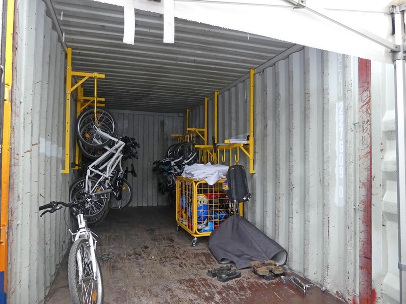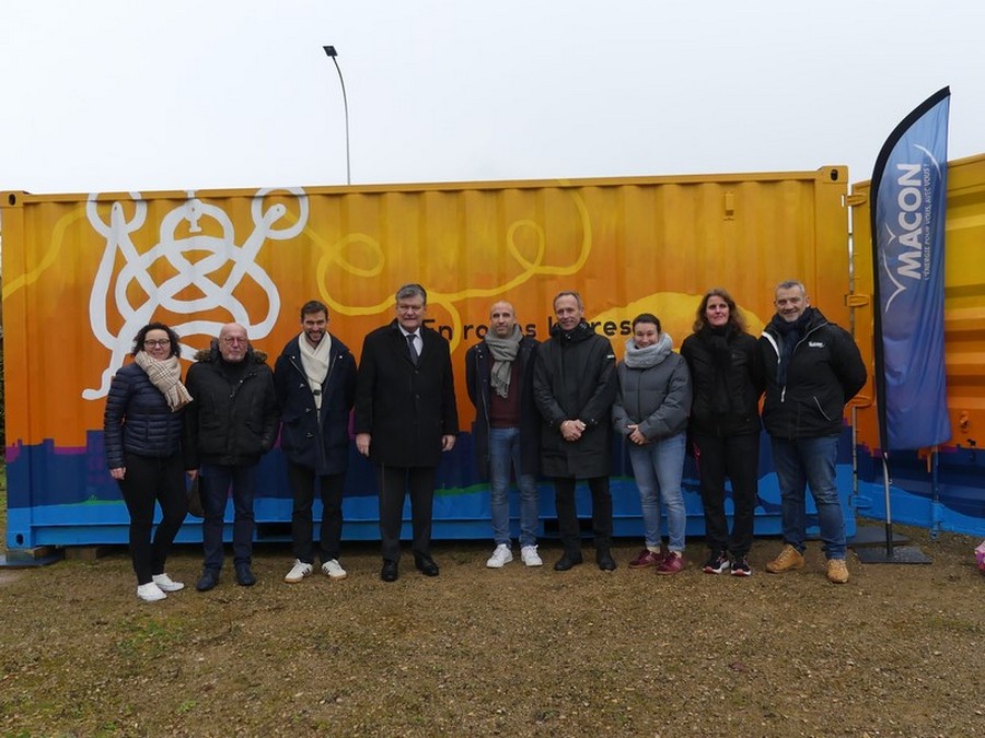 Dessiné et peint par Samuel Lambert, ce conteneur maritime récupéré par la Ville contient 27 vélos et casques. Le service serrurerie de Mâcon a installé des accroches pour suspendre les vélos. Le conteneur sécurisé est installé dans la cour de l'école du Grand Four jusqu'aux vacances d'avril. Il sera transporté ensuite à l'école annexe puis sur le secteur de Mâcon Sud.