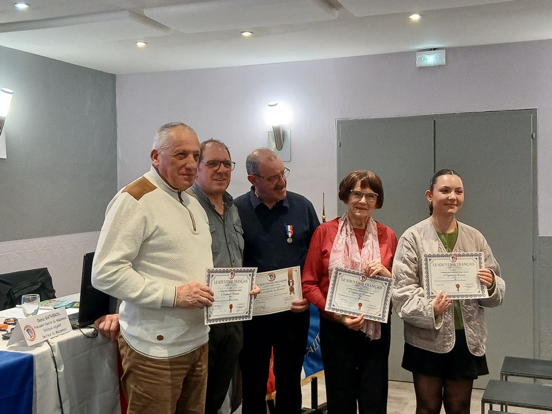 La réunion s’est achevée par la remise d’une médaille et d’un diplôme à quatre personnes en reconnaissance de leur investissement : médaille de Bronze à Denis Cholket, et diplômes d’honneur à Jacqueline Valladon, Solene de Meric de Bellefon, et Jean Luc Prudent.