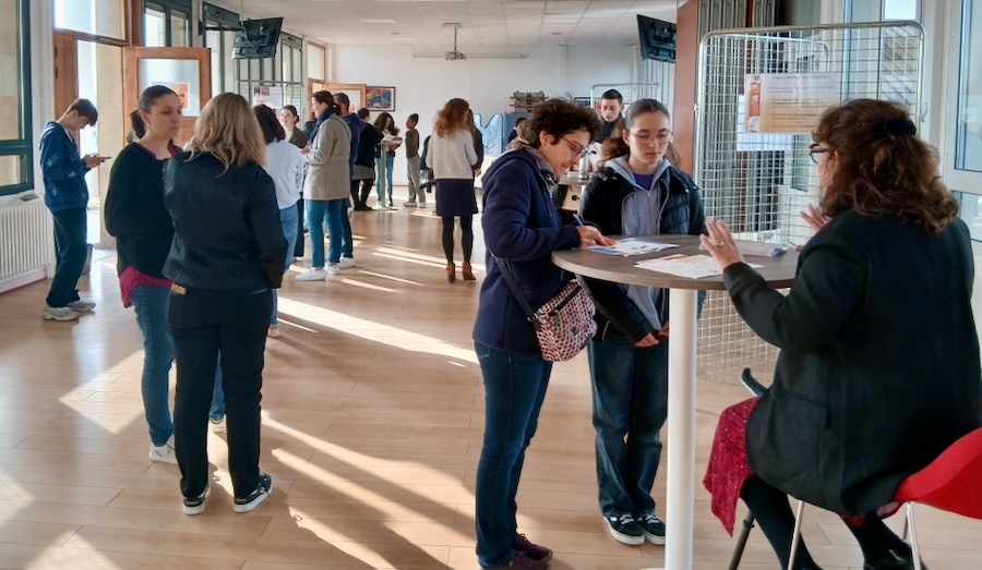 Dès leur arrivée, les parents ont pu interroger les professeurs principaux des classes de seconde, disponibles pour répondre et informer sur les enjeux de cette classe. D’autres enseignants présentaient les projets spécifiques de l’établissement dans les enseignements spécifiques : le chinois pour s’ouvrir à un autre mode de pensée, portugais pour découvrir une langue parlée dans 9 pays, musique pour développer le plaisir de jouer ensemble.
