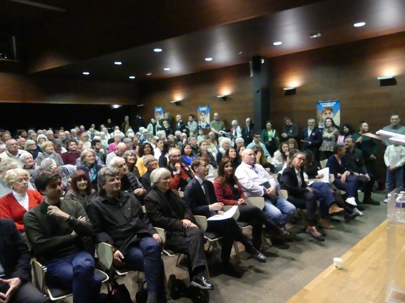 Monsieur Émile Blondet, tête de liste de Mâcon Demain, a tenu une réunion publique pour le second tour des municipales à la salle de conférence de la Médiathèque devant plus de 250 personnes.
