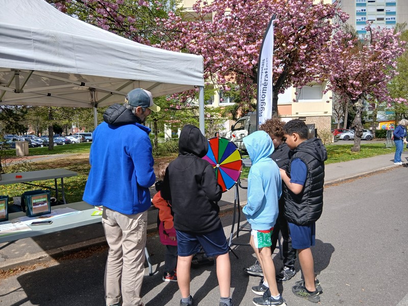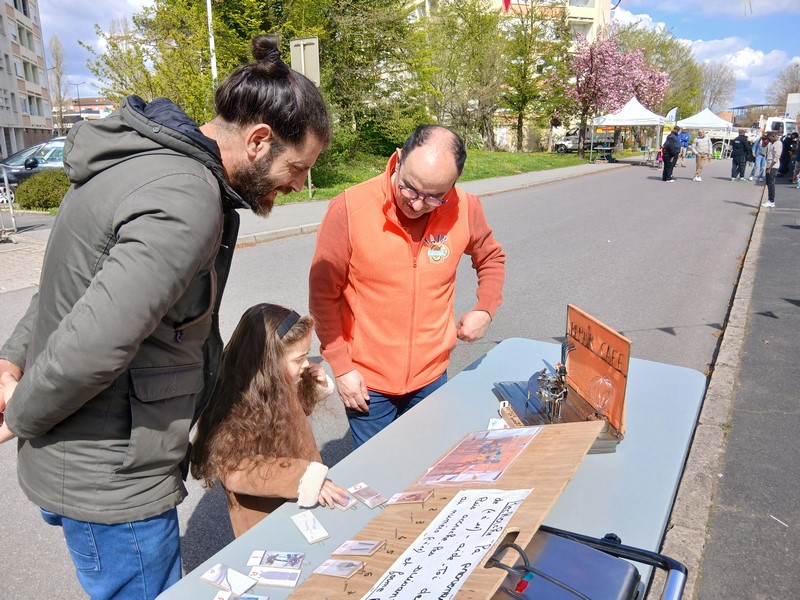 Les conseillers municipaux, Brenda Krasnici et Yan Yangir, venus rencontrer les diverses associations, se sont, eux aussi , laissés enthousiasmer par un jeu proposé par Repair Santé.