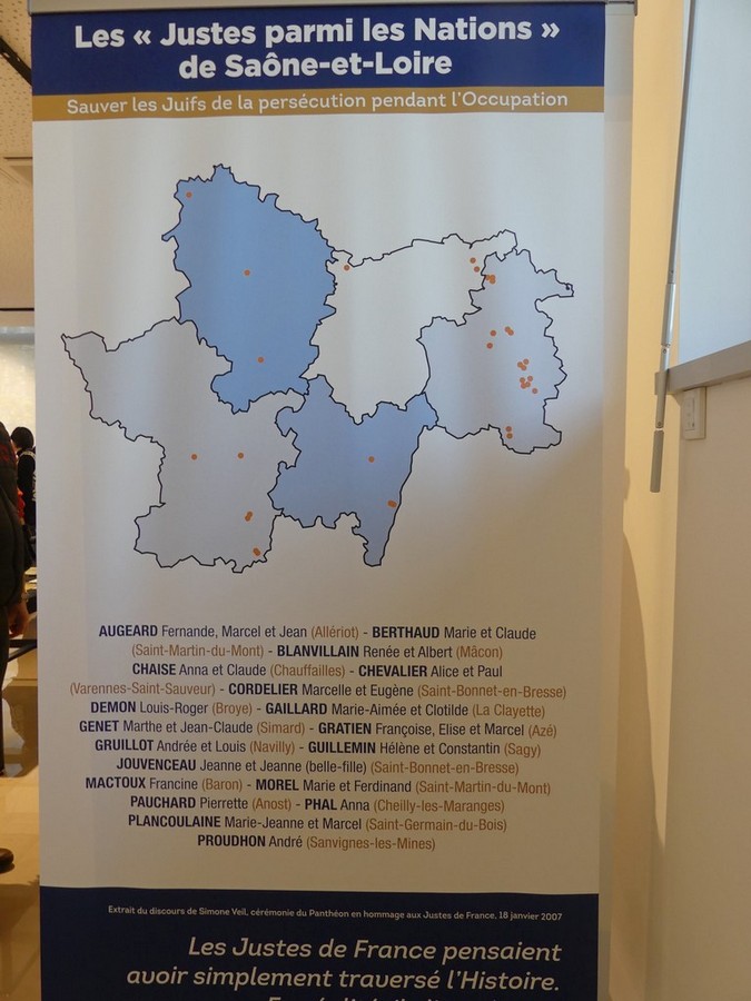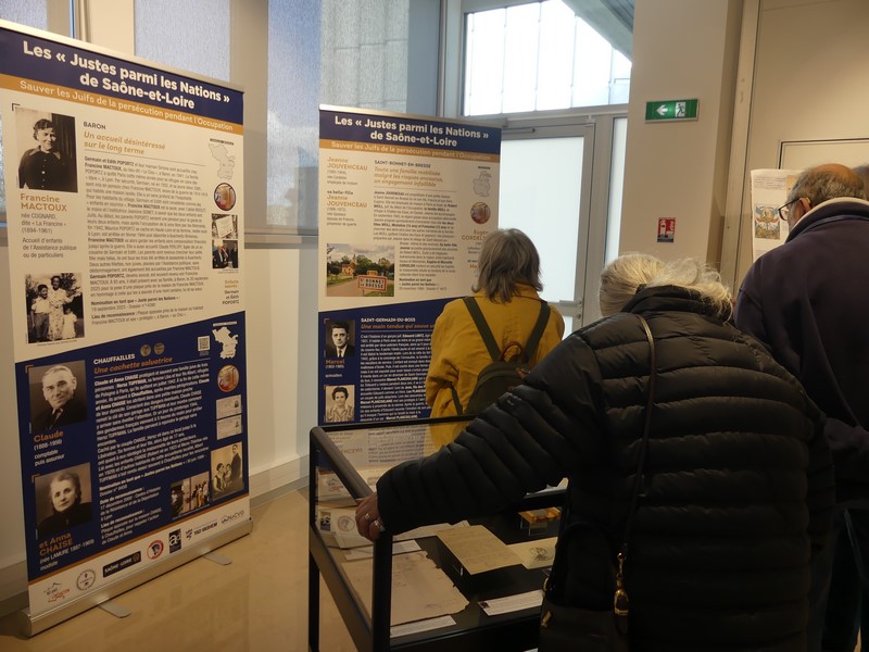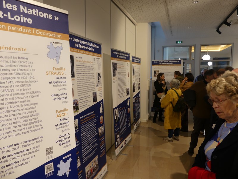 Le vernissage de l'exposition s'est tenu ce mercredi soir en présence de quelques familles de Justes, du délégué départemental du Souvenir français Philippe Lenglet, de Mme Goutagny, représentante du comité français pour Yad Vashem et de Mme Corneloup, enseignante au lycée Dumaine de Mâcon qui a travaillé avec ses élèves sur la famille Gratien d'Azé.