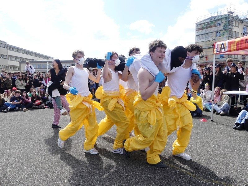 Une superbe chorégraphie des professeur.es du lycée a permis de faire patienter les spectateurs dans une ambiance électrique le temps de la délibération du jury.