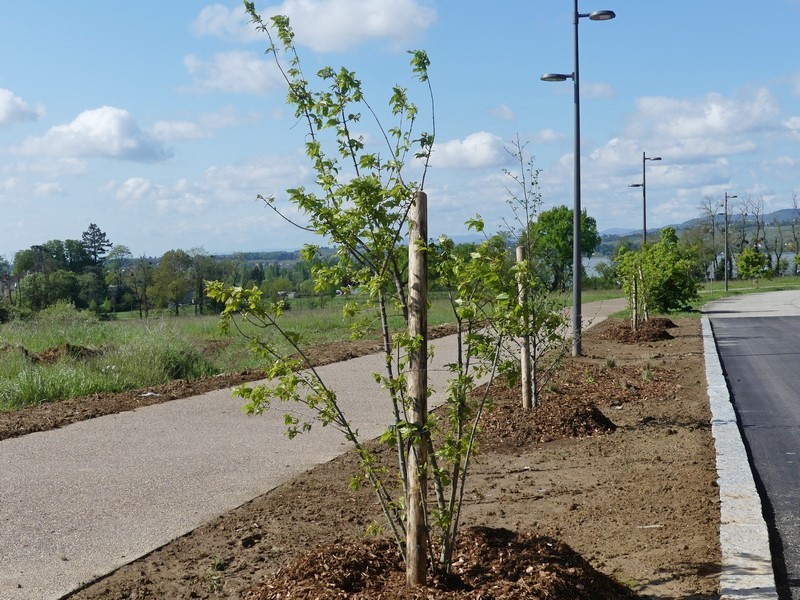 Après une phase de terrassement à l’automne, les travaux de réseaux se sont poursuivis jusqu’en janvier. La voirie a ensuite été réalisée en février avec un aménagement d'une voie mixte piéton – vélo sur l'ensemble du linéaire de 675 mètres. Les plantations viennent d'être finalisées : 17 arbres et des plantations basses dans les noues paysagères.