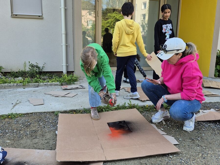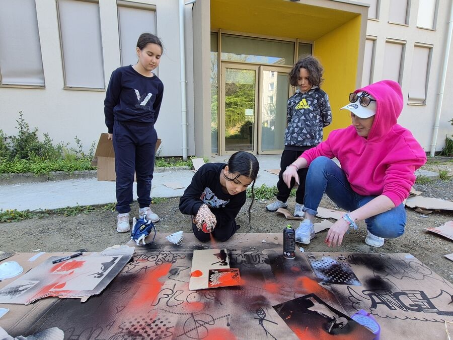 Ensuite, la MJC a trouvé un moyen ludique pour les ouvrir au street art : customiser des faux dollars à l'image du travail subtil de l'artiste "Alec Monopoly" (style de street art utilisant des pochoirs et des personnages du Monopoly). De plus, les enfants ont également parcouru la ville de Mâcon à la recherche de fresques murales, qu’ils ont repérées avant de prendre des photos devant elles.