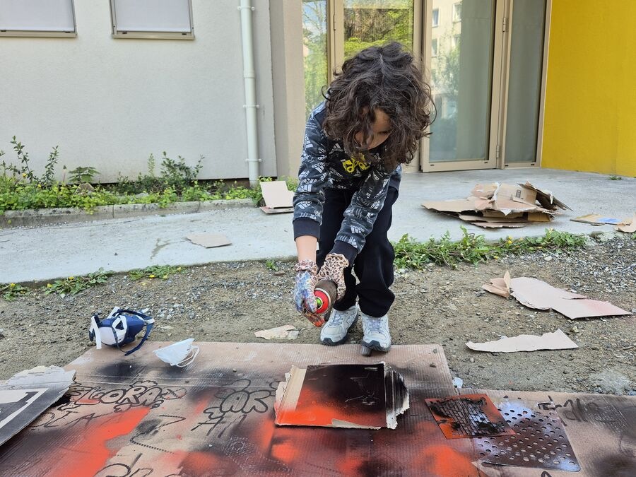 Une deuxième semaine de vacances placée sous le signe du street art à la MJC de l’Héritan. Depuis le lundi 13 avril, des enfants, âgés de 6 à 10 ans, découvrent les multiples facettes de l'art urbain à travers ses techniques diverses et variées. En début de semaine, les apprentis artistes urbains avaient une mission de la plus haute importance : se trouver un "blaze" (nom) afin de signer leurs futures œuvres.