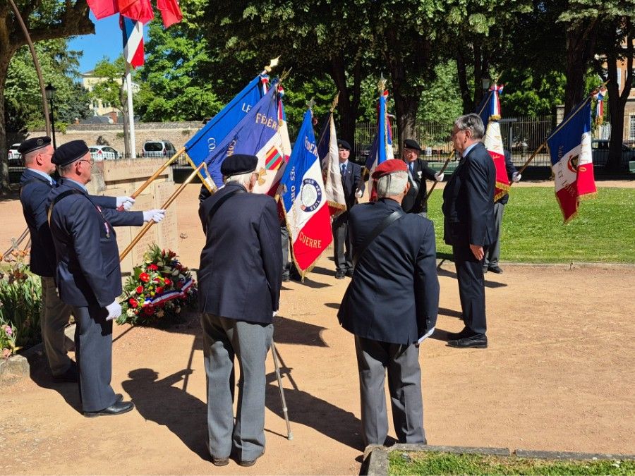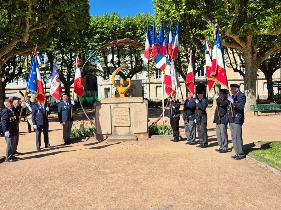 La matinée a débuté par un rassemblement et une prise en charge des porte-drapeaux, accompagnés de la fanfare. Ensuite, plusieurs temps de recueillement ont été observés sur différents lieux symboliques de la ville, notamment le monument à la Résistance et à la Déportation.