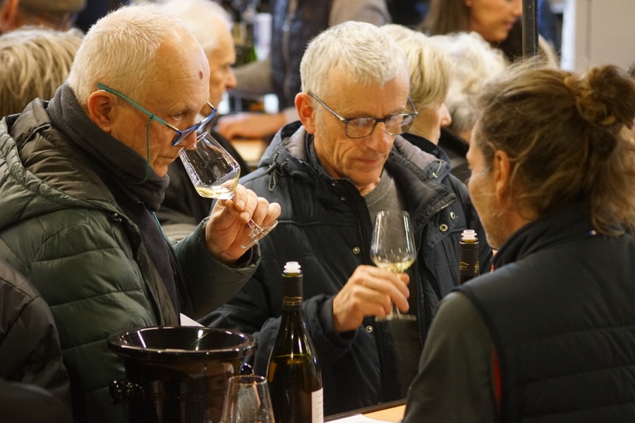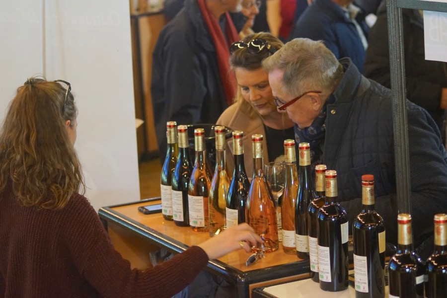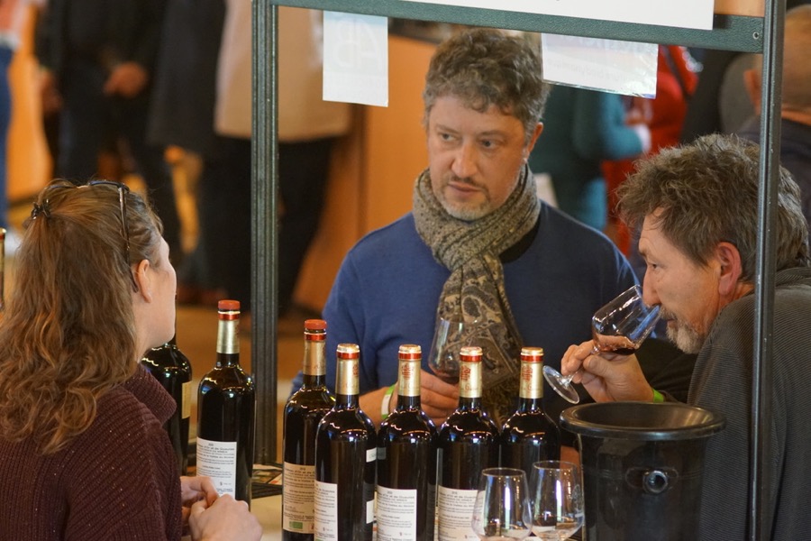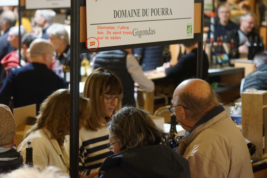 Chose remarquable, le nombre de domaines en bio présents. 19 sur 53 vignerons exposants, la palme revenant à la région Languedoc-Roussillon, avec 6 domaines sur 7. Le soleil facilite la culture en bio dit-on. Moins de pluie, moins de maladies... Notons que deux d'entre les 6 bio sont certifiés Demeter, label de culture en biodynamie, le top du bio !
