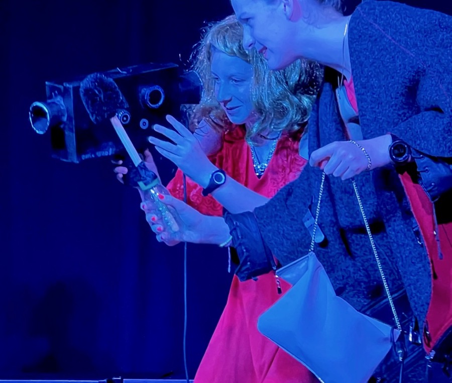Ensuite la scène accueillait six ados qui nous permettaient de vivre en direct, la réalisation d’une grosse production cinématographique dans “Le film qui fait vachement pas peur !”. Magnifique travail de critique au vitriol du monde hollywoodien du cinéma. La très fine assistante de la réalisatrice, fit preuve d’une belle appropriation du rôle avec, la mise en lumière de tous ces très bons partenaires.