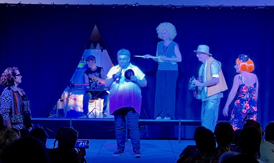 Ce furent enfin les six adultes : les 20 ans de l’école de musique, cela se fête ! Un spectacle théâtral et musical riche en couleurs où le talent de la mise en scène, nous emmenait entre, pot-pourri, nostalgie musicale et acidité burlesque, un travail remarquable des apprentis comédiens, tous très hauts en couleurs.