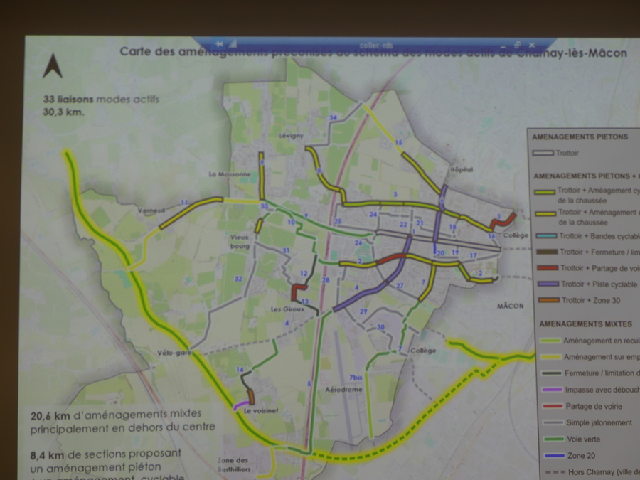 Le maillage global prévoit une trentaine de kilomètres, 33 liaisons de linéaire, une vingtaine d'aménagements mixte (piéton / cycliste), plus 8 km de section avec aménagement piéton /cycliste séparé et 1 km 3 d'aménagement piéton à la Coupée. Un second volet avec des actions complémentaires d'accompagnement pour informer et promouvoir, des signalisations directionnelles, et signalisations polices et des zones d'apaisement (limitation à 20 ou 30 km).