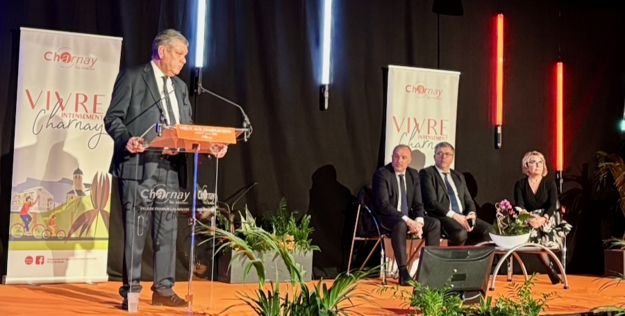 Fabien Genet, sénateur de Saône-et-Loire, a ensuite pris la parole. Non sans humour, il a évoqué sa dernière venue à Charnay-lès-Mâcon lors de l’inauguration du COSEC, marquée par la présence inattendue de l’ancien Premier ministre. Il a salué le dynamisme de la commune et sa qualité de vie, portés par un « développement raisonné et raisonnable, plaçant l’humain au cœur ». Malgré un mandat qu’il a qualifié de « rock and roll », marqué par la crise sanitaire et les tensions énergétiques, il a estimé que la ville avait su relever les défis avec ses habitants.