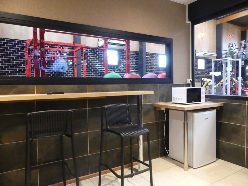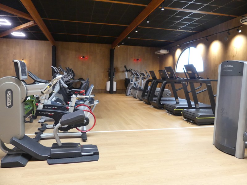 Au sol, des tapis anti choc et anti dérapant. Au rez-de-chaussées, les douches et les vestiaires avec casier. Il faut penser à amener un cadenas. Un espace pour prendre son repas. Une fontaine à eau, une machine à café et un distributeur de boissons seront installés à partir du lundi 26 janvier. Tous les appareils dédiés à la musculation des différentes parties du corps avec haltères et autres technologies. À l'étage, deux grandes salles disposant de tous types de vélos pour bras, jambes, station debout, et bien d'autres parties du corps, escalier et tapis de marche à élévation. Au fond, une petite salle d'abdo et un espace de coaching individuel (actuellement en cours d'installation).