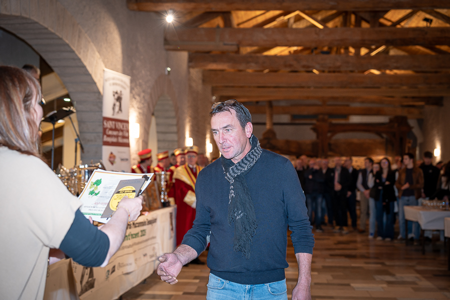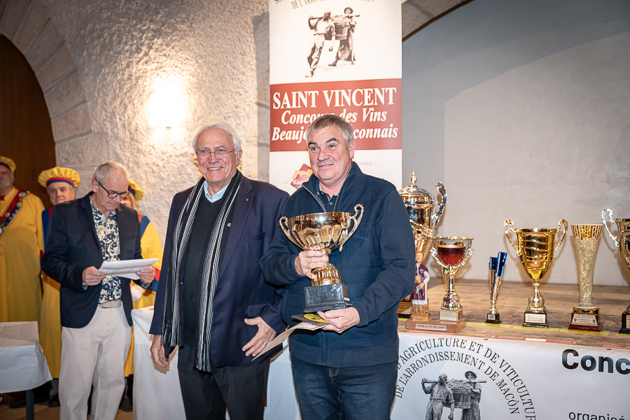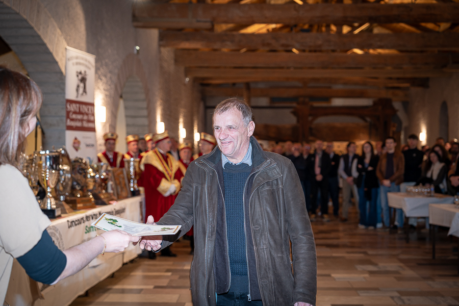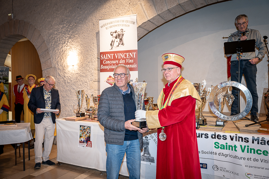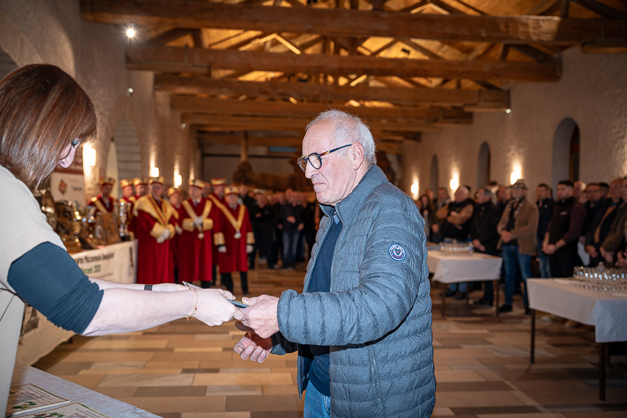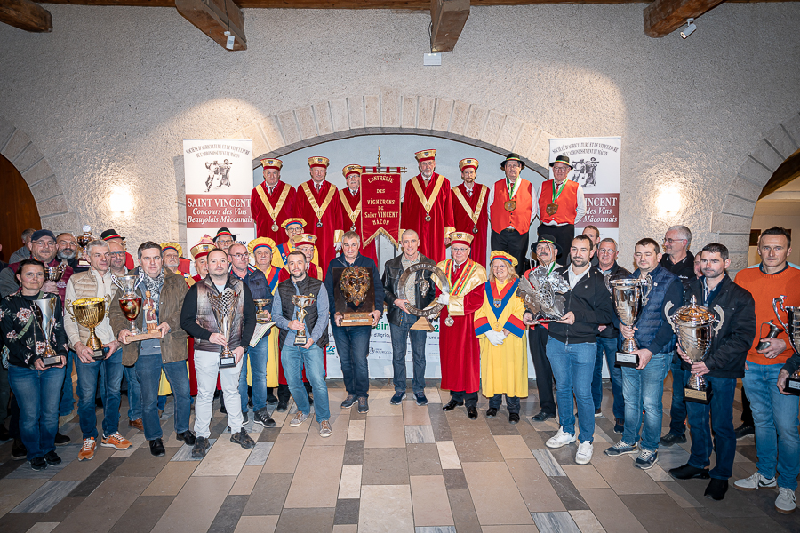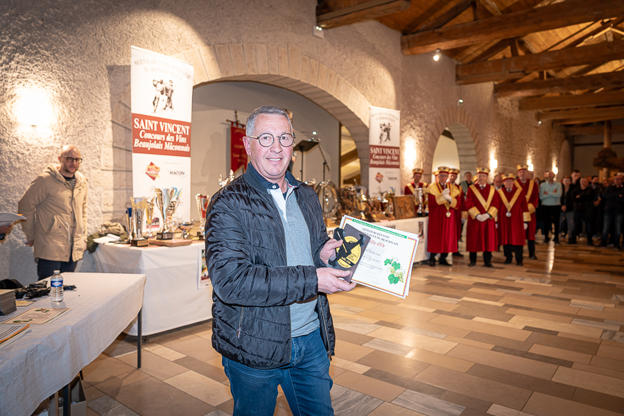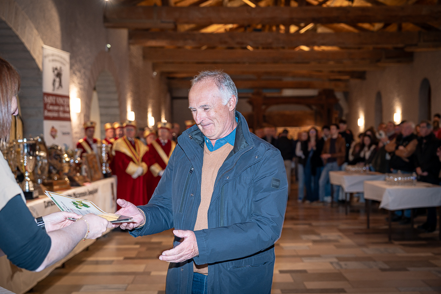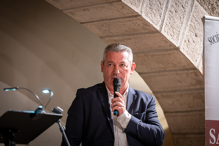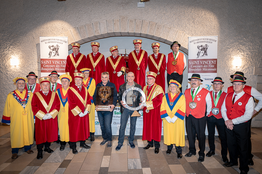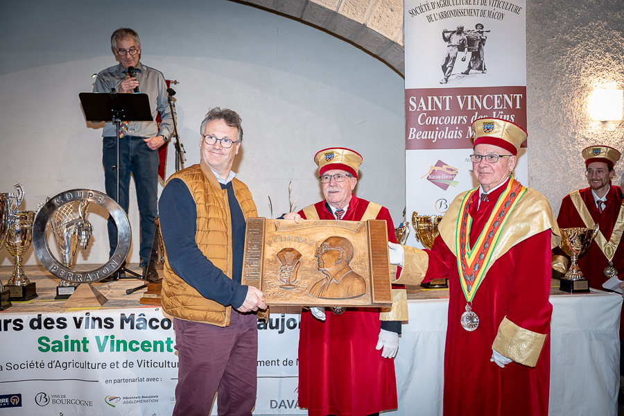 En amont de la remise des trophées, qui s’est déroulée dans l’enceinte du Château d’Aine à Azé, le président de la Société d’Agriculture et de Viticulture de l’arrondissement de Mâcon, Luc Chevalier, a exprimé sa déception de voir la quantité d’échantillon baisser à 750 cette année « ce n’est pas assez et je compte sur vous (les vignerons), par votre solidarité, pour faire remonter ce chiffre et espérer atteindre plus de 1000 échantillons l’année prochaine afin de pérenniser ce concours. Je tiens également à saluer les trois confréries présentes ce soir, je crois qu’on leur dois une fière chandelle, de par leur engagement, ils sont tous bénévoles. Elles font rayonner les produits de notre terroir mâconnais, de notre département et bien évidemment de la France. Je souhaite les mettre à l’honneur, on compte sur vous, vous êtes nos ambassadeurs ! Nous les professionnels, nous avons besoin de vous, merci et bravo à vous ! »
