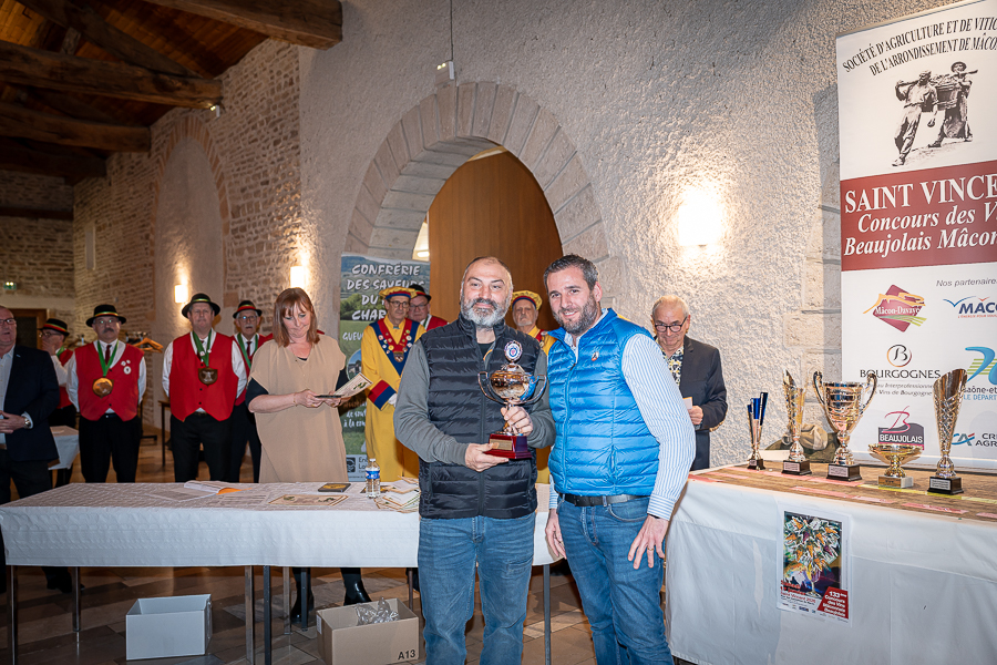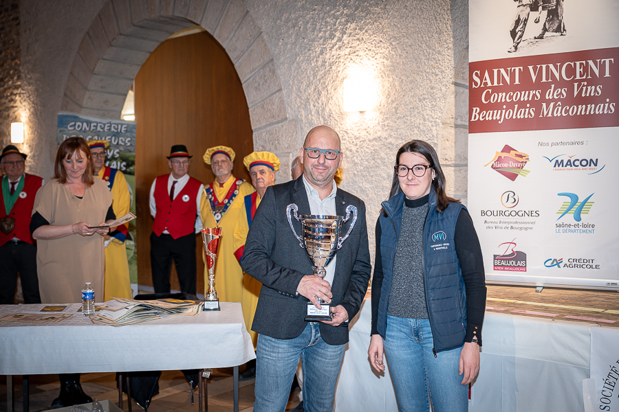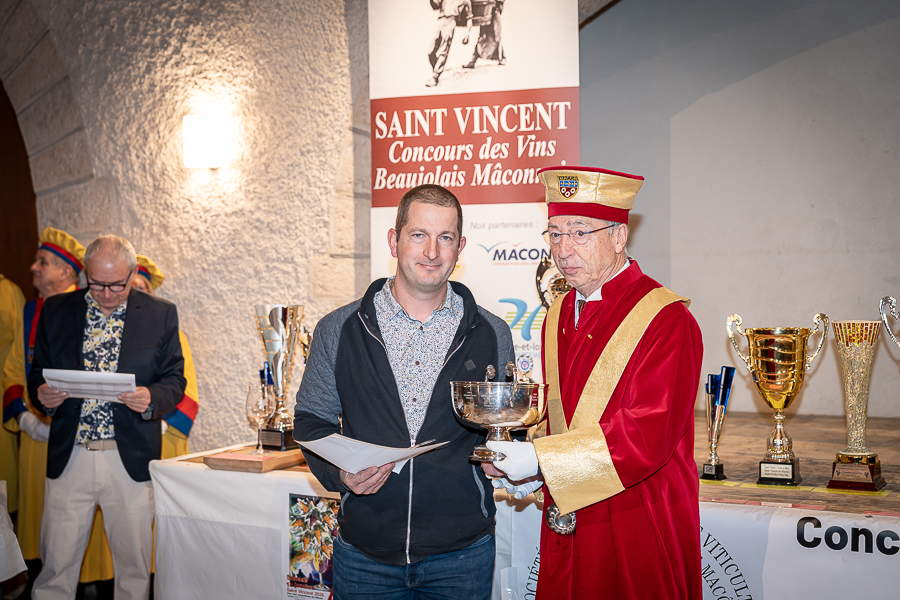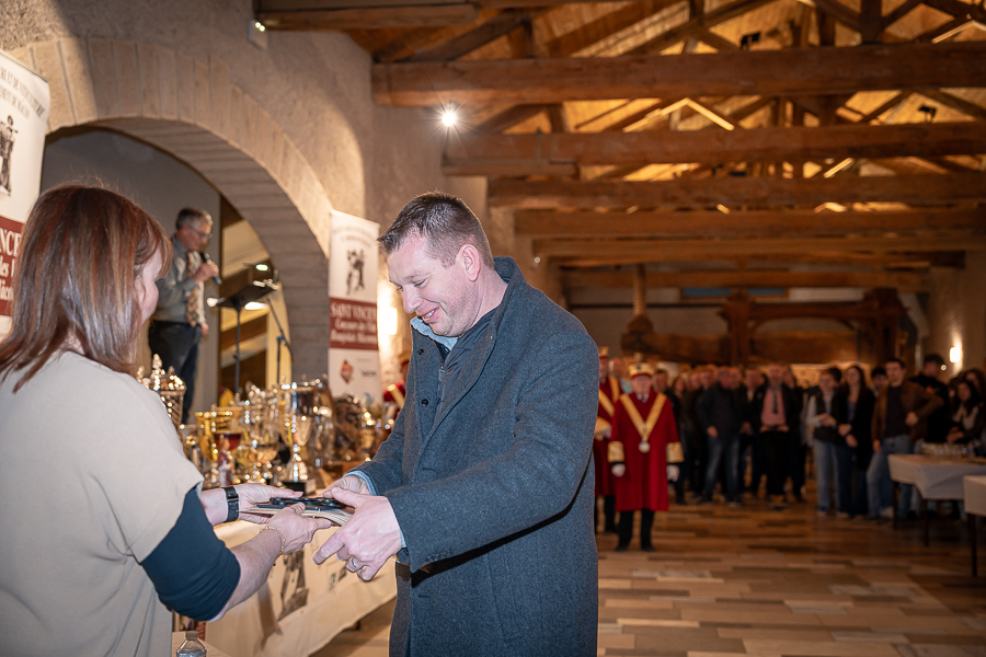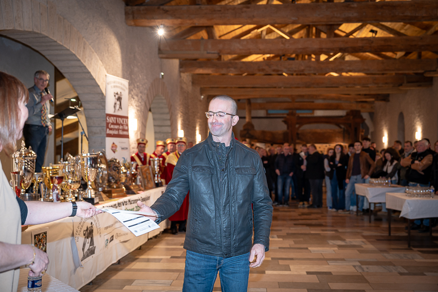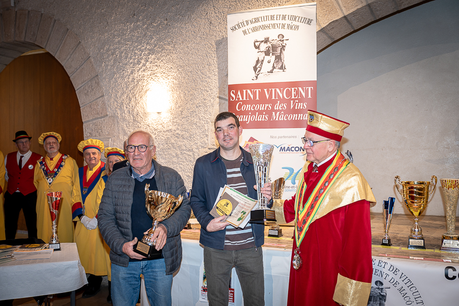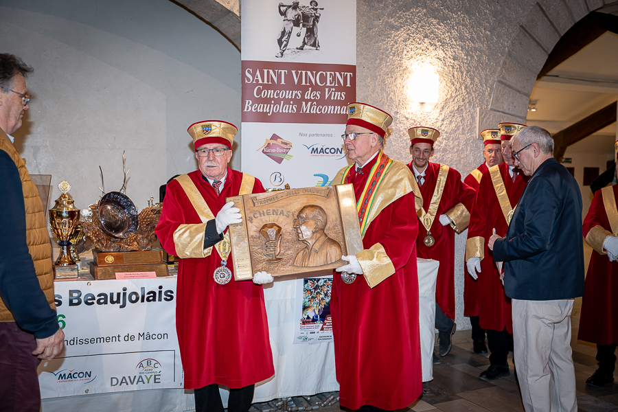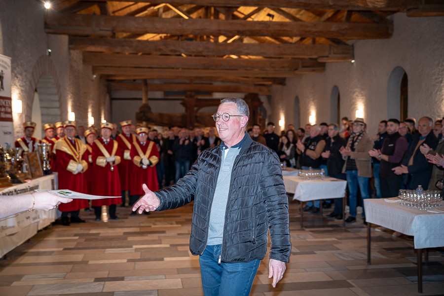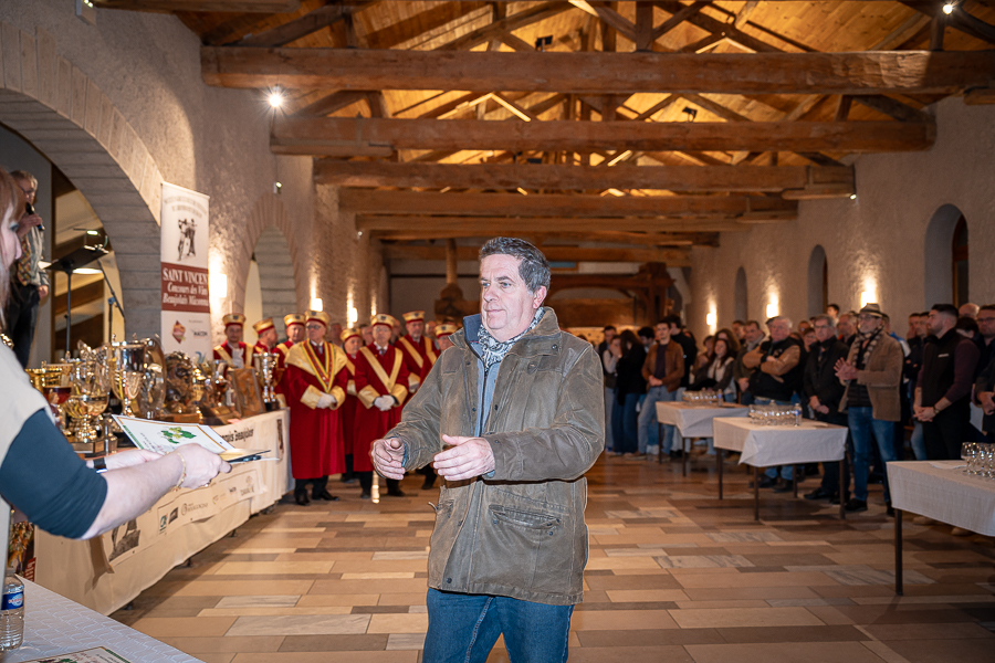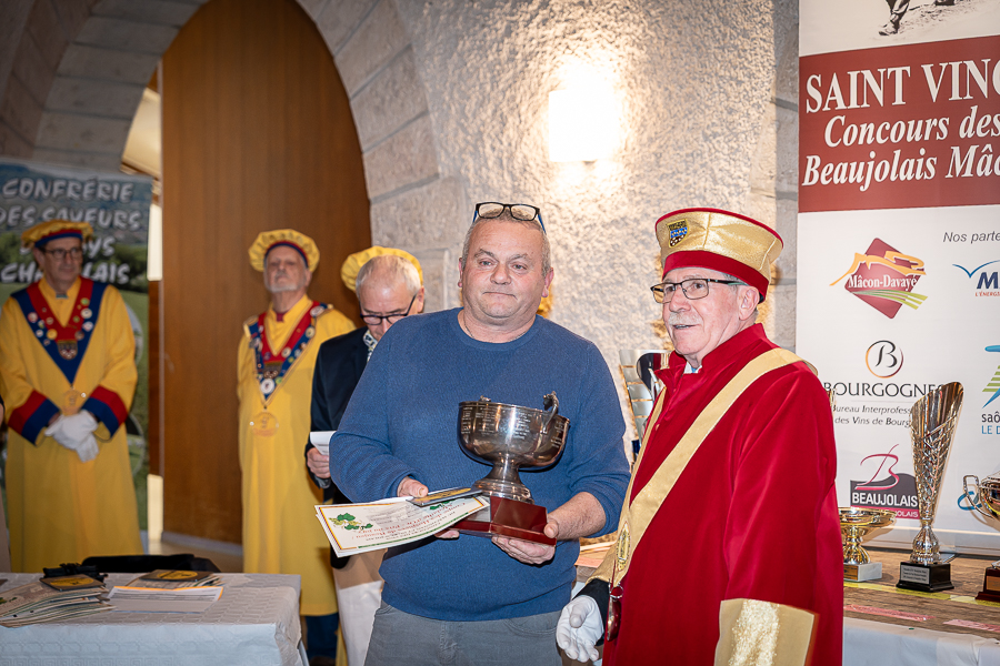 En amont de la remise des trophées, qui s’est déroulée dans l’enceinte du Château d’Aine à Azé, le président de la Société d’Agriculture et de Viticulture de l’arrondissement de Mâcon, Luc Chevalier, a exprimé sa déception de voir la quantité d’échantillon baisser à 750 cette année « ce n’est pas assez et je compte sur vous (les vignerons), par votre solidarité, pour faire remonter ce chiffre et espérer atteindre plus de 1000 échantillons l’année prochaine afin de pérenniser ce concours. Je tiens également à saluer les trois confréries présentes ce soir, je crois qu’on leur dois une fière chandelle, de par leur engagement, ils sont tous bénévoles. Elles font rayonner les produits de notre terroir mâconnais, de notre département et bien évidemment de la France. Je souhaite les mettre à l’honneur, on compte sur vous, vous êtes nos ambassadeurs ! Nous les professionnels, nous avons besoin de vous, merci et bravo à vous ! »