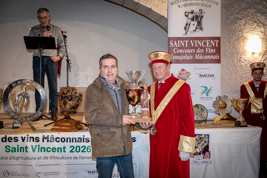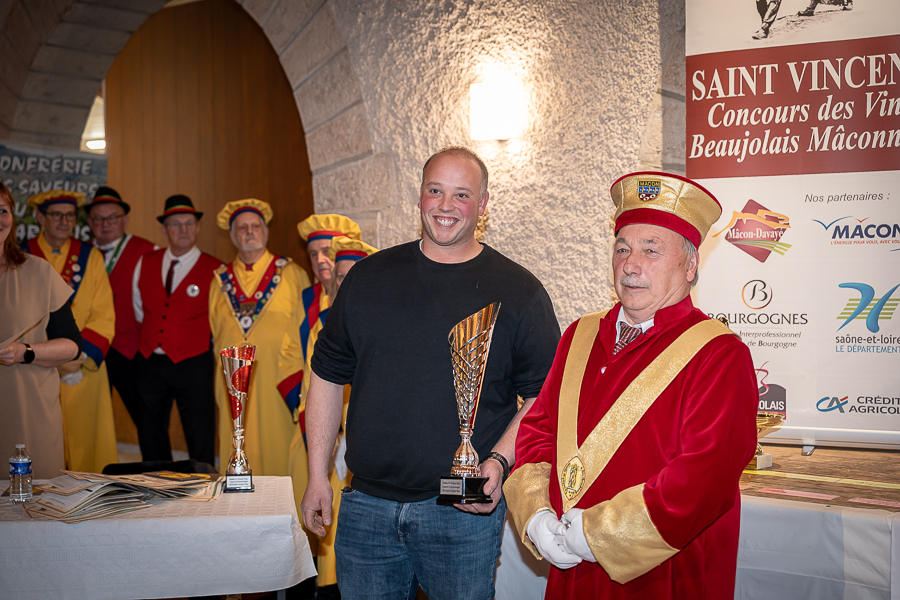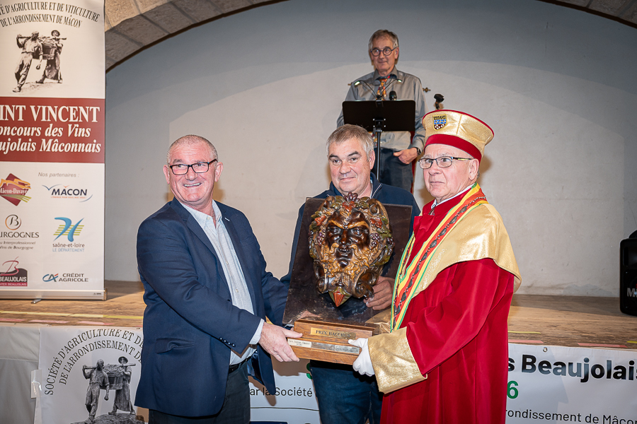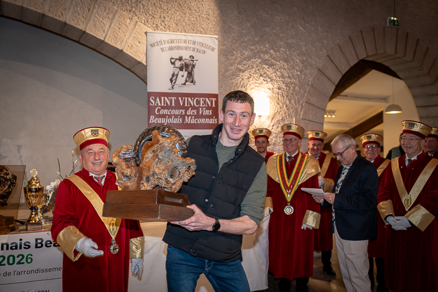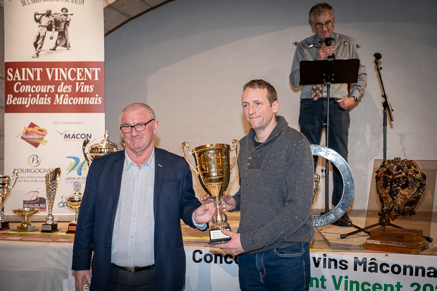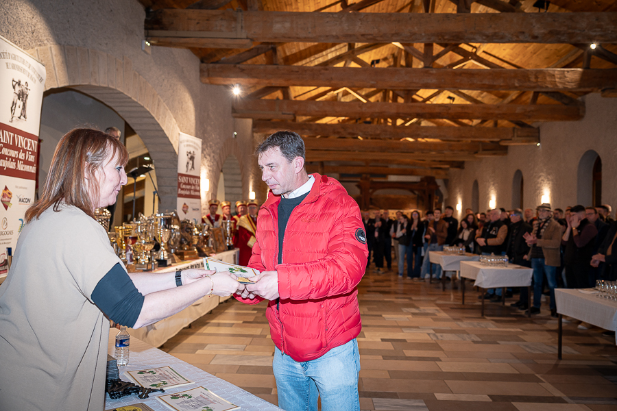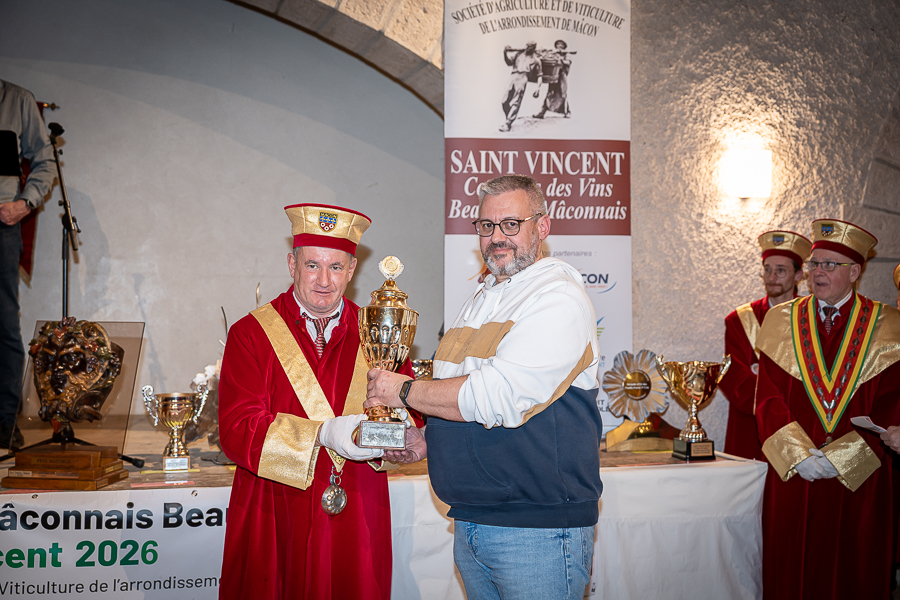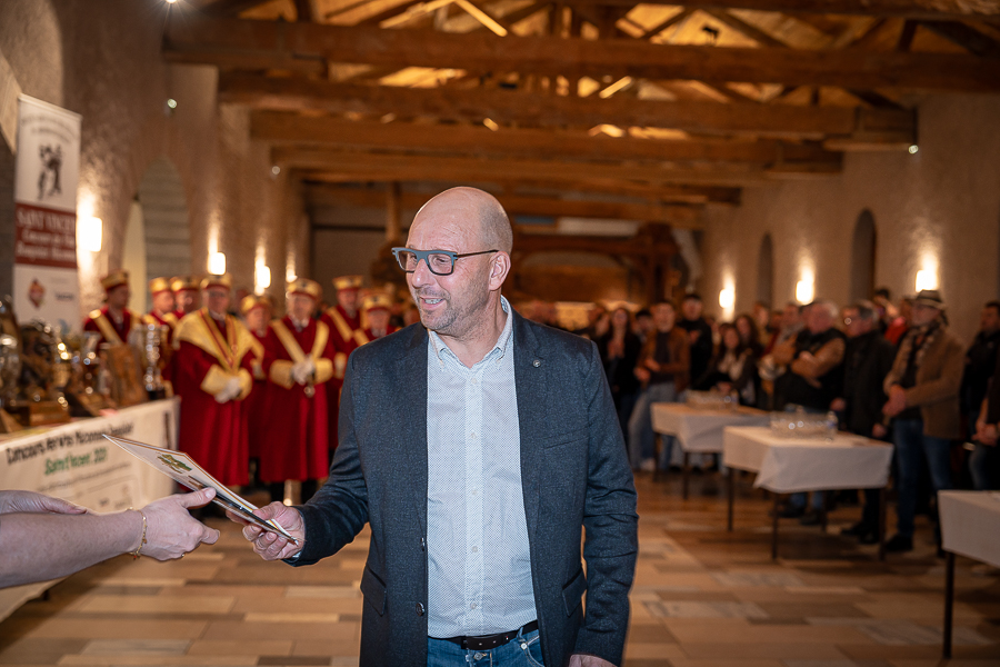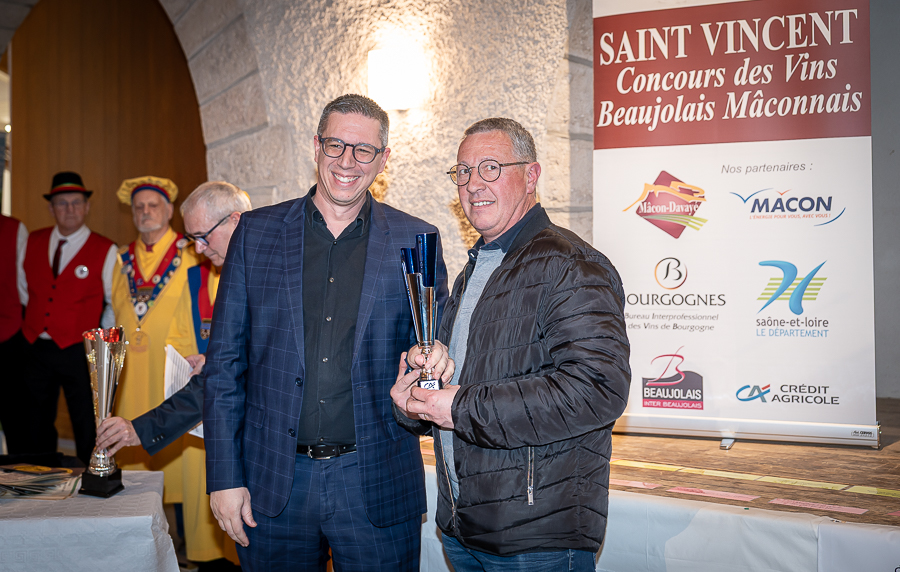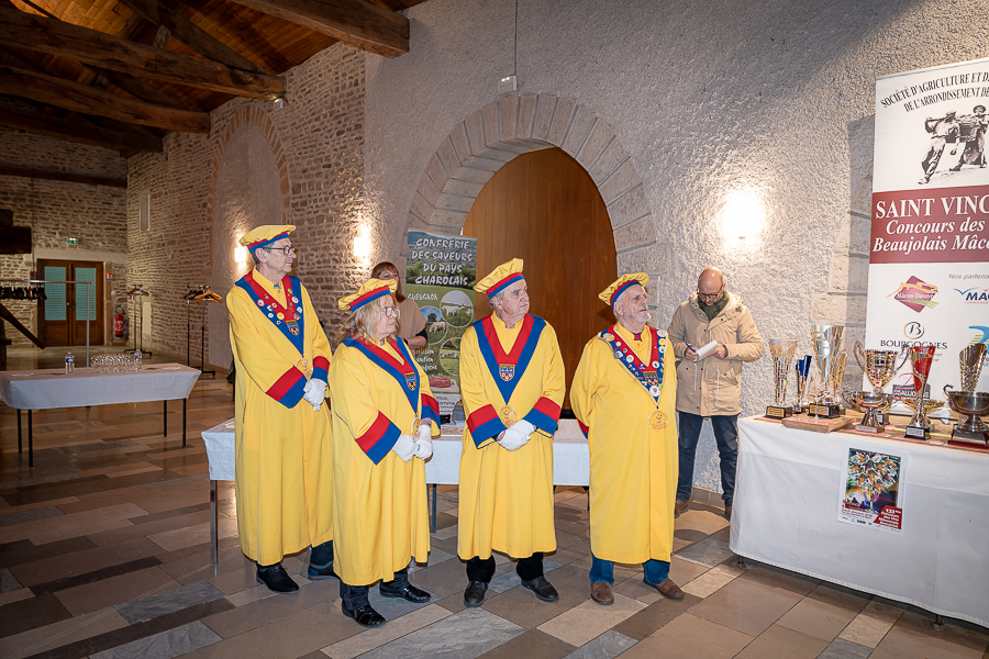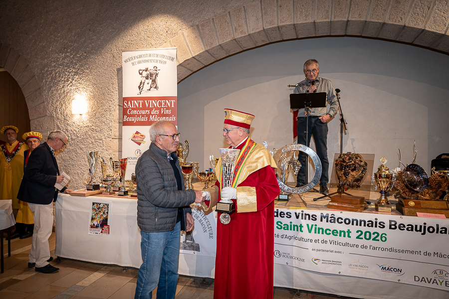 En amont de la remise des trophées, qui s’est déroulée dans l’enceinte du Château d’Aine à Azé, le président de la Société d’Agriculture et de Viticulture de l’arrondissement de Mâcon, Luc Chevalier, a exprimé sa déception de voir la quantité d’échantillon baisser à 750 cette année « ce n’est pas assez et je compte sur vous (les vignerons), par votre solidarité, pour faire remonter ce chiffre et espérer atteindre plus de 1000 échantillons l’année prochaine afin de pérenniser ce concours. Je tiens également à saluer les trois confréries présentes ce soir, je crois qu’on leur dois une fière chandelle, de par leur engagement, ils sont tous bénévoles. Elles font rayonner les produits de notre terroir mâconnais, de notre département et bien évidemment de la France. Je souhaite les mettre à l’honneur, on compte sur vous, vous êtes nos ambassadeurs ! Nous les professionnels, nous avons besoin de vous, merci et bravo à vous ! »