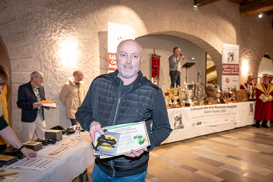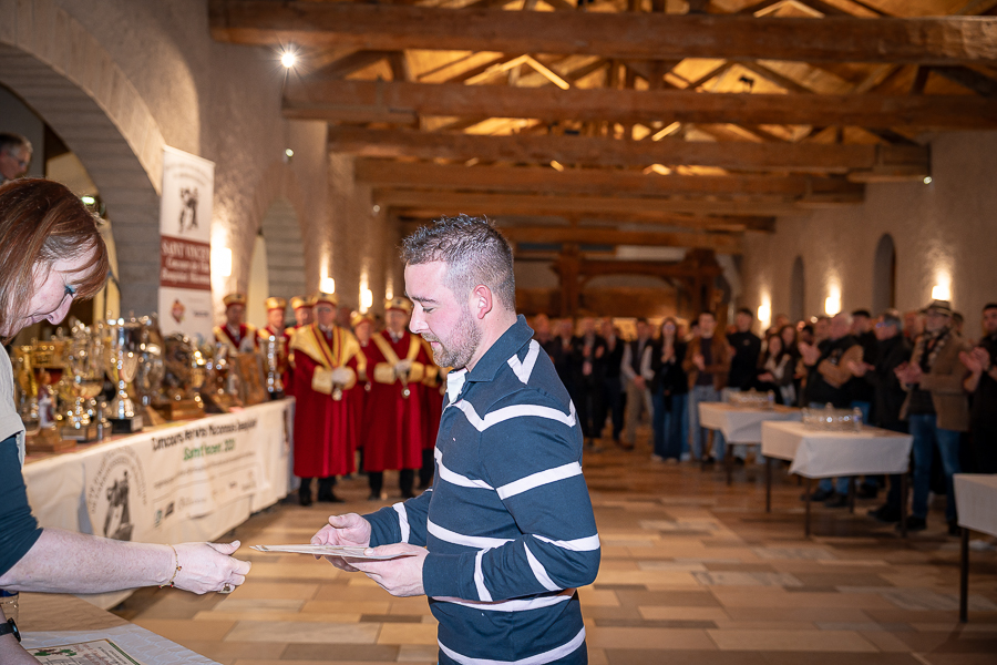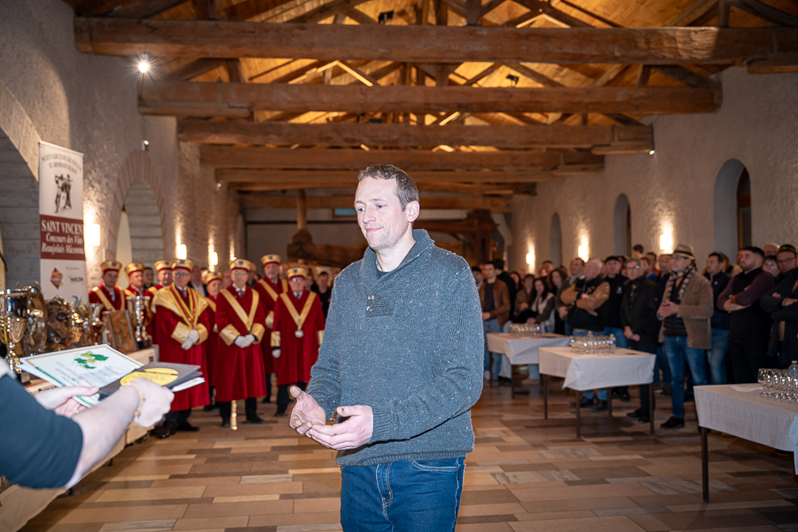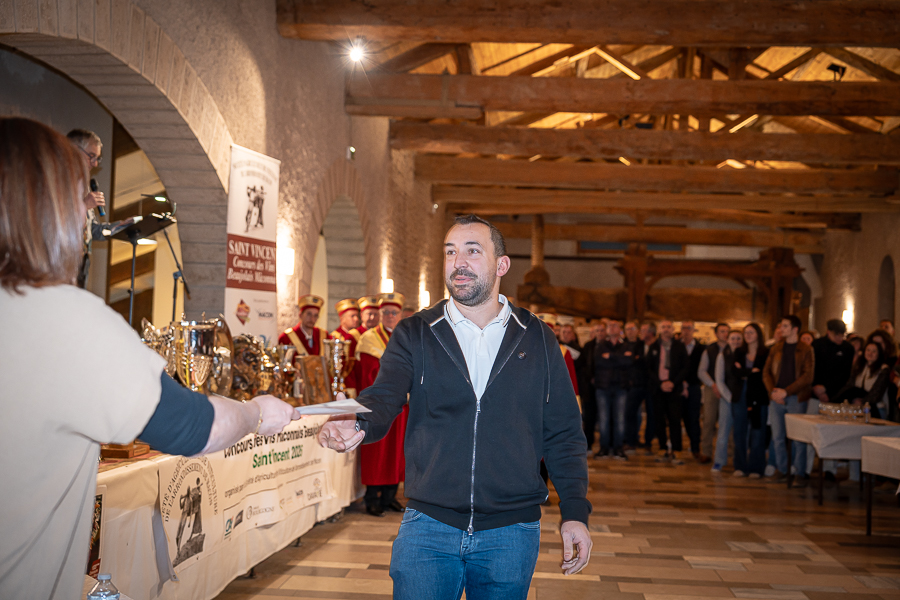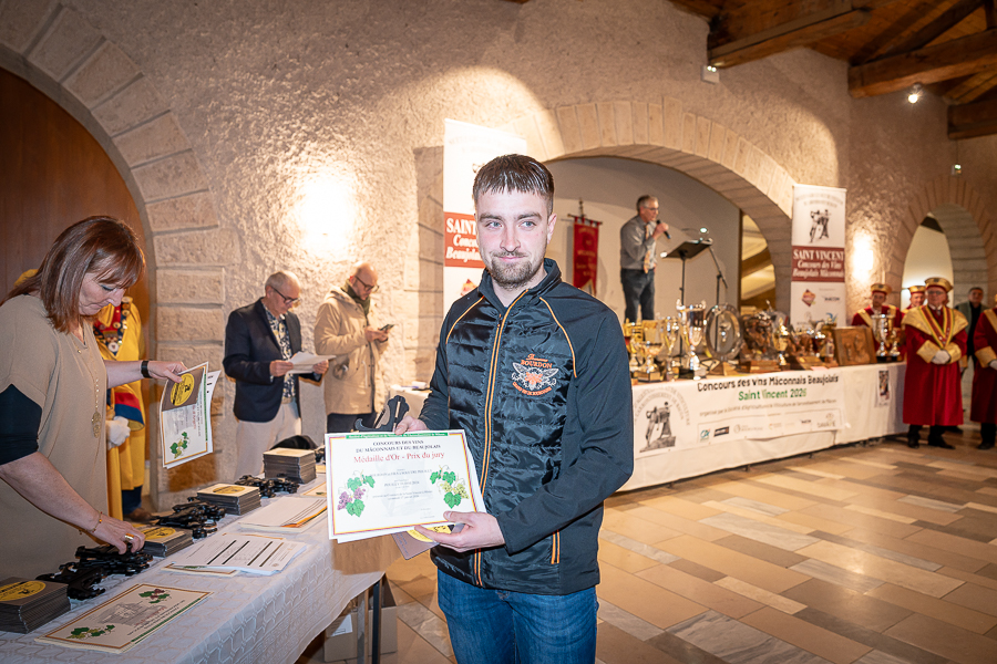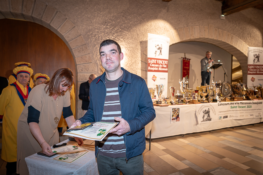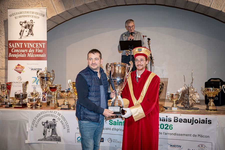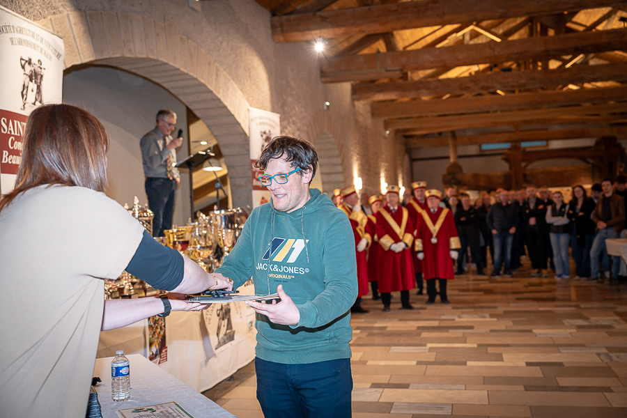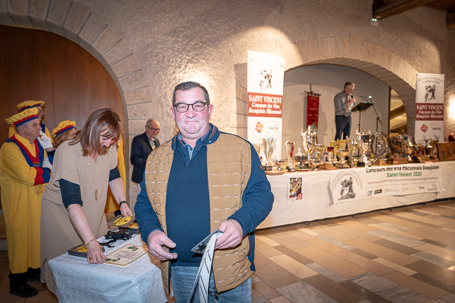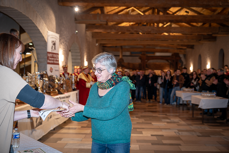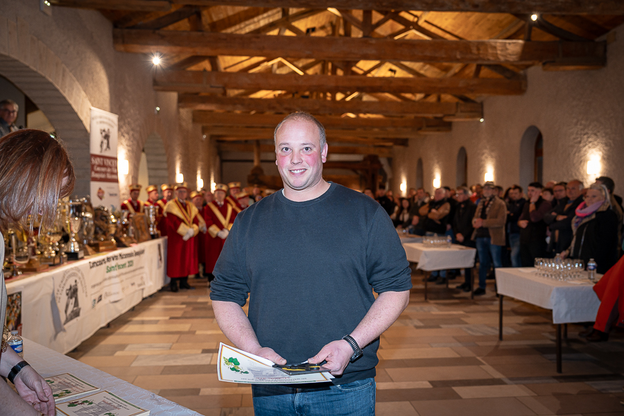 En amont de la remise des trophées, qui s’est déroulée dans l’enceinte du Château d’Aine à Azé, le président de la Société d’Agriculture et de Viticulture de l’arrondissement de Mâcon, Luc Chevalier, a exprimé sa déception de voir la quantité d’échantillon baisser à 750 cette année « ce n’est pas assez et je compte sur vous (les vignerons), par votre solidarité, pour faire remonter ce chiffre et espérer atteindre plus de 1000 échantillons l’année prochaine afin de pérenniser ce concours. Je tiens également à saluer les trois confréries présentes ce soir, je crois qu’on leur dois une fière chandelle, de par leur engagement, ils sont tous bénévoles. Elles font rayonner les produits de notre terroir mâconnais, de notre département et bien évidemment de la France. Je souhaite les mettre à l’honneur, on compte sur vous, vous êtes nos ambassadeurs ! Nous les professionnels, nous avons besoin de vous, merci et bravo à vous ! »