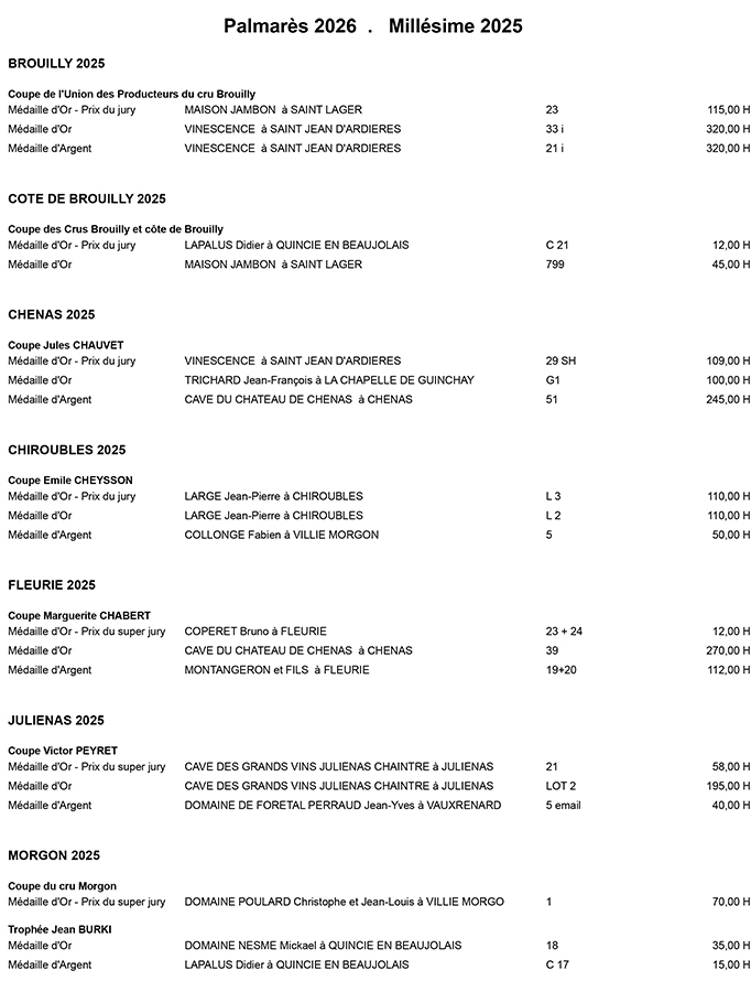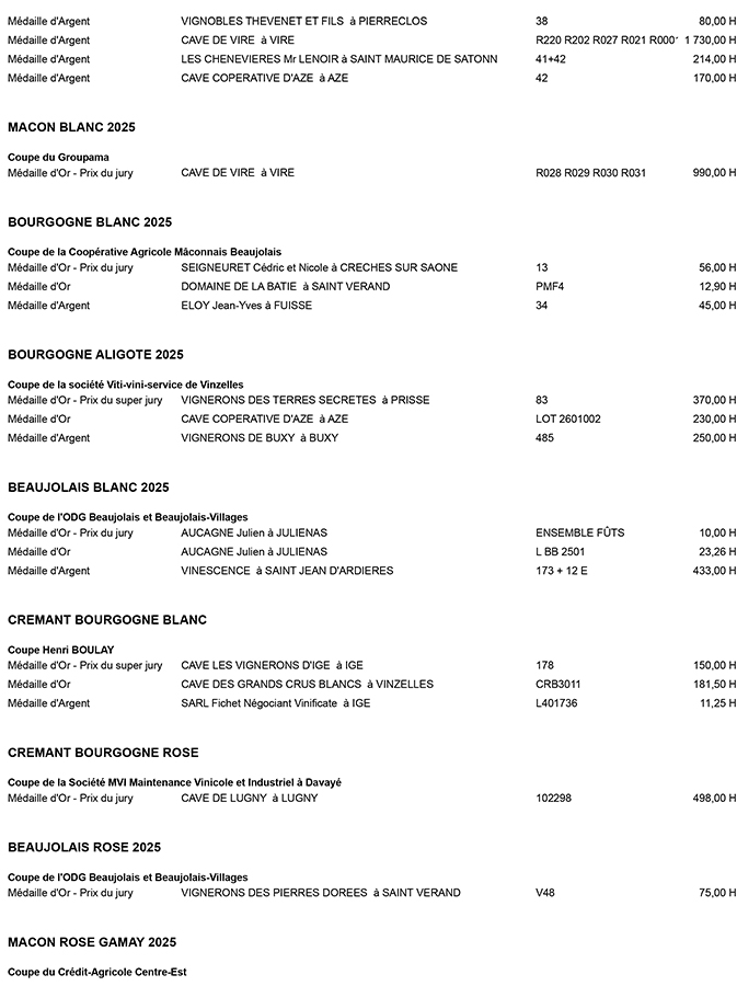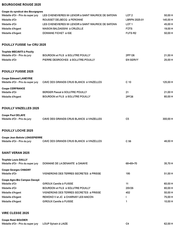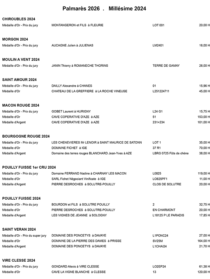 Ils étaient 250 jury samedi dernier à déguster les 750 échantillons présentés lors de la 133e édition du concours des vins de la Saint-Vincent au parc des Expositions. Ce jeudi soir, les résultats ont été dévoilés et c’est la Cave Coopérative d’Azé qui a remporté la très convoitée Coupe Perraton, distinction qui récompense le meilleur Mâcon Village Blanc.