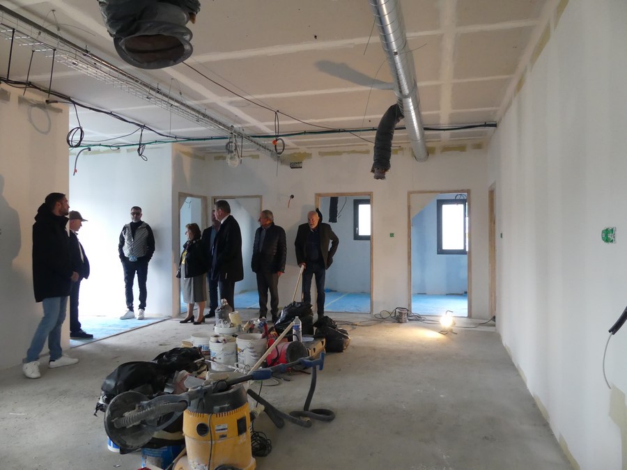 Le Président de l'Agglomération Jean-Patrick Courtois a présenté ce lundi 20 octobre, la future Maison d'Assistantes Maternelles (MAM) de Sennecé-les-Mâcon en présence de sa Vice-présidente chargée de la petite enfance Michelle Jugnet, du Maire délégué de Sennecé Charles Rebischung-Marc, de l'architecte Joseph Micco et des entreprises locales.
