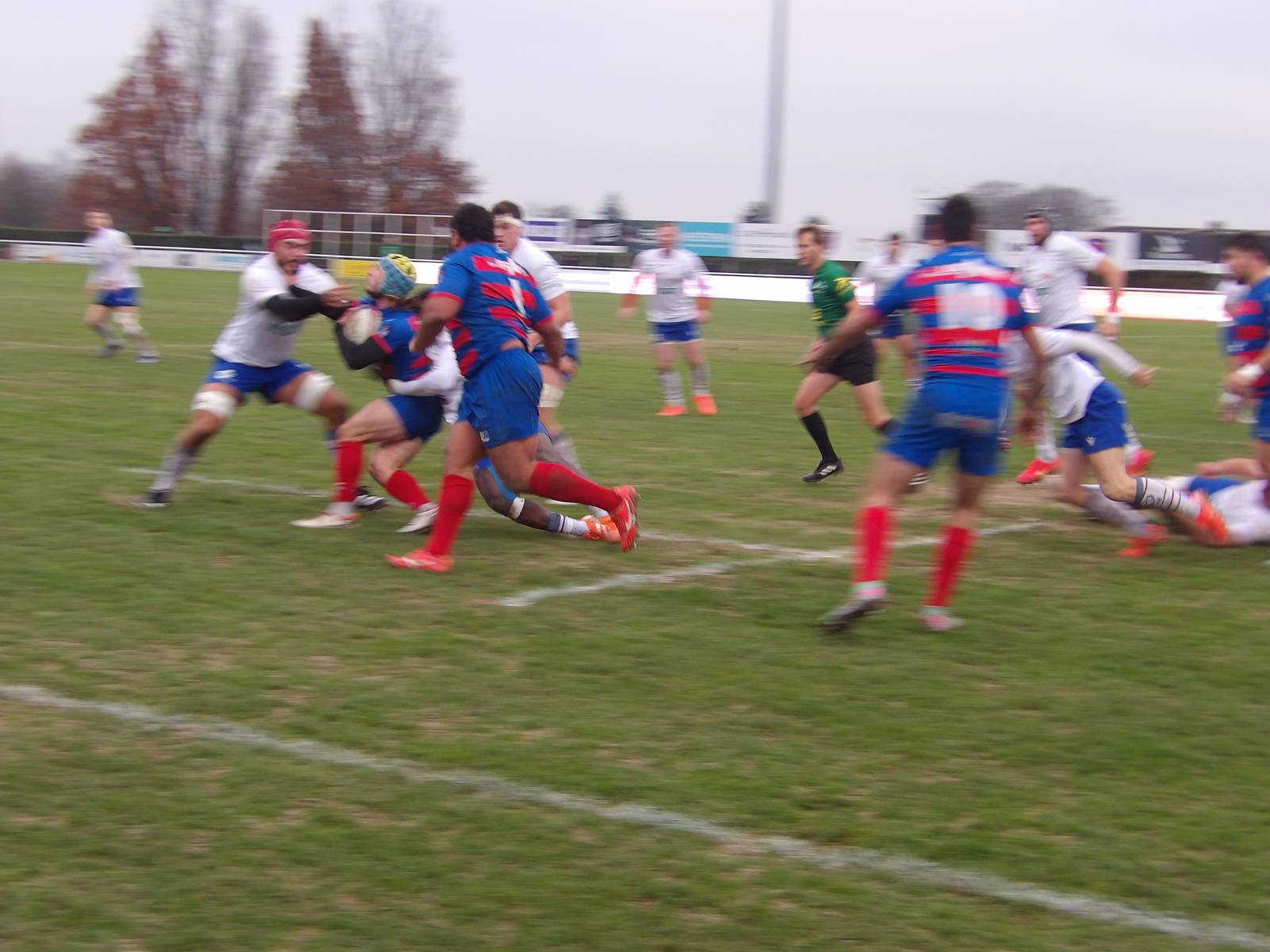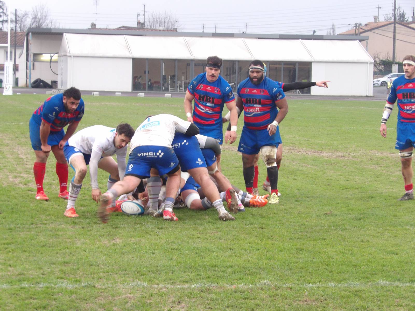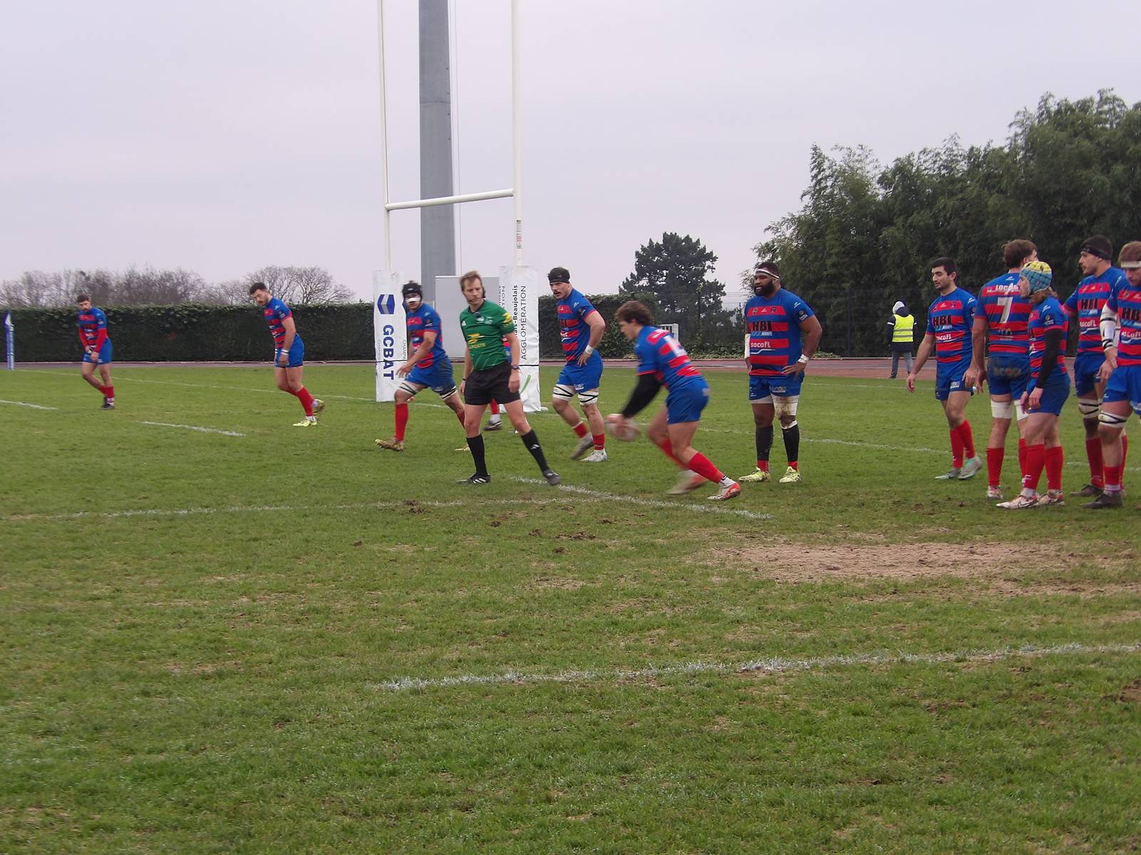 Après une nouvelle pénalité cette fois-ci manqué par les Rouges et Bleus, le Stade Métropolitain se montrait dangereux et allait aplatir le 1er essai du match suite à une séquence de pick'n'go sur la ligne adverse. Essai qui était transformé ( 3-7 21').