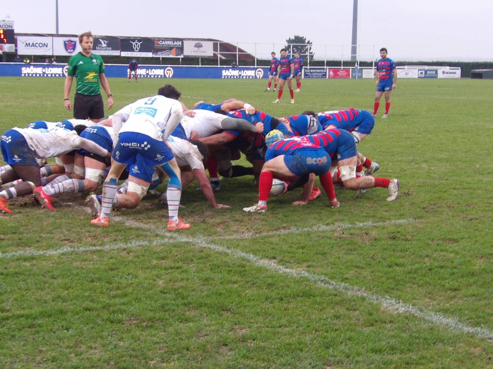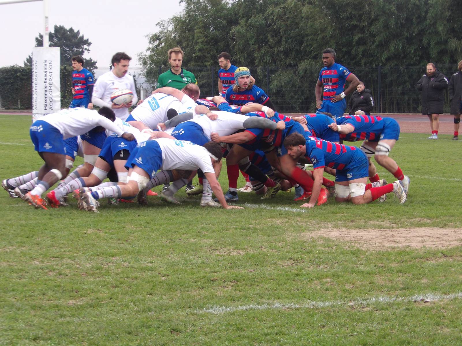 Le staff mâconnais apportait du sang neuf avec le changement complet de la 1ère ligne et était récompensé aussitôt suite à une pénalité consécutives à un bon jeu d'avant des mâconnais. ( 12-10 47').