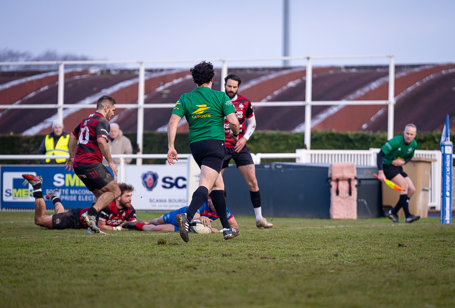 À noter la belle adresse des deux botteurs, Lavaux pour Mâcon et Guigue pour Rumilly, qui ont su transformer leur coup de pied de pénalité dans des angles très excentrés…