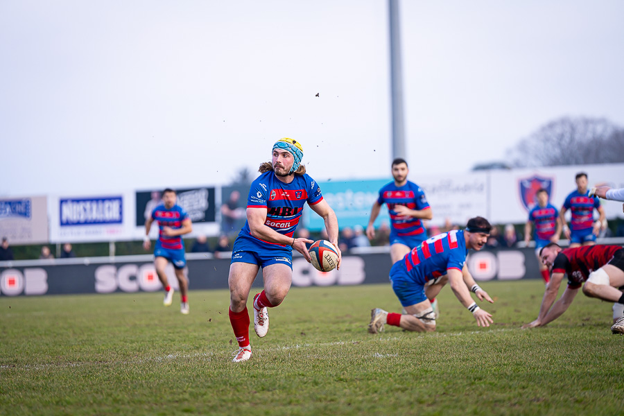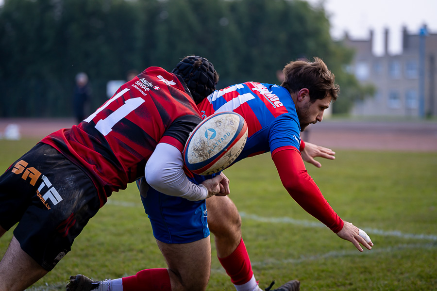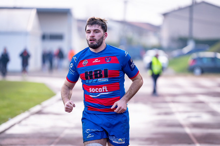 Le début de la rencontre est marqué par un gros choc et une frayeur pour le numéro 15 de Rumilly Pandolfo qui sort sur blessure sous les applaudissements des spectateurs, il sera transporté à l’hôpital à la mi-temps. Place au jeu maintenant avec les taureaux mâconnais qui entament bien ce match et mènent 10-0 suite à une pénalité de Lavaux et un essai de Léo Angels transformé par ce même Lavaux (10’). Les savoyards, réagissent rapidement et réduisent l’écart avec un essai transformé à la 13ème minute, 10-7. Les rouge & bleu de l’ASM sont dominateurs et vont bien terminer cette première période avec deux nouveaux essais transformés, Stragiotti (17’) et Delacruz (29’). Score à la pause, 24-10 pour Mâcon.