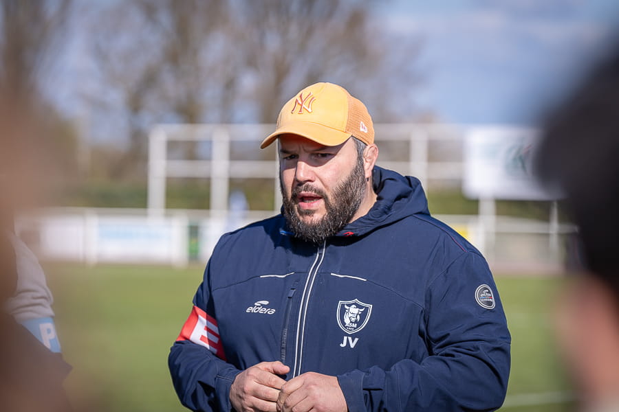 J.V. : C’est un retour de bloc donc avec le match reporté de la semaine passée, cela faisait deux semaines que nous n’avions pas joué. Nous arrivons en fin de saison et nous savons que ces retours de bloc sont assez délicats à appréhender pour les joueurs. J’ai dit à mes joueurs que de prendre 5 points contre cette équipe de Tricastin qui depuis  4 mois est dans le top 2, c’était très bien, nous terminons avec le bonus offensif donc il ne faut pas faire la fine bouche, certes le contenu n’était pas terrible. Je pense que si le match avait était emballant et que nous avions fait lever la tribune, nous aurions perdu ce match. Il fallait absolument garder notre organisation et rester dans le cadre contre cette équipe et ne pas partir dans du grand rugby, c’est ce qu’ils aiment et nous nous serions égaré dans notre stratégie. Nous avons réussi à conserver notre plan de jeu et l’essentiel est acquis avec cette victoire, qui plus est, je le répète, avec le bonus offensif. Le contenu n’est pas flamboyant mais le résultat comptable est là et ce que je regarde.