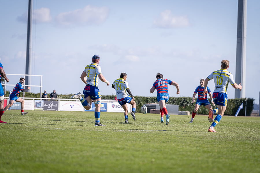 En deuxième mi-temps, peu de phases de jeu intéressantes à signaler si ce n’est la bonne organisation et la rigueur défensive des joueurs du coach Julien Veniat qui laissent volontairement le ballon à Tricastin qui ne parvient pas à se montrer dangereux. Un seul essai sera marqué en seconde mi-temps (56’) grâce à Simon Benoist à l’extrémité droite de la ligne d’attaque mâconnaise, essai non transformé cette fois-ci avec un vent puissant qui ralentit la trajectoire du ballon sur le coup de pied très excentré de Van Der Bank. Score final 29-7.
