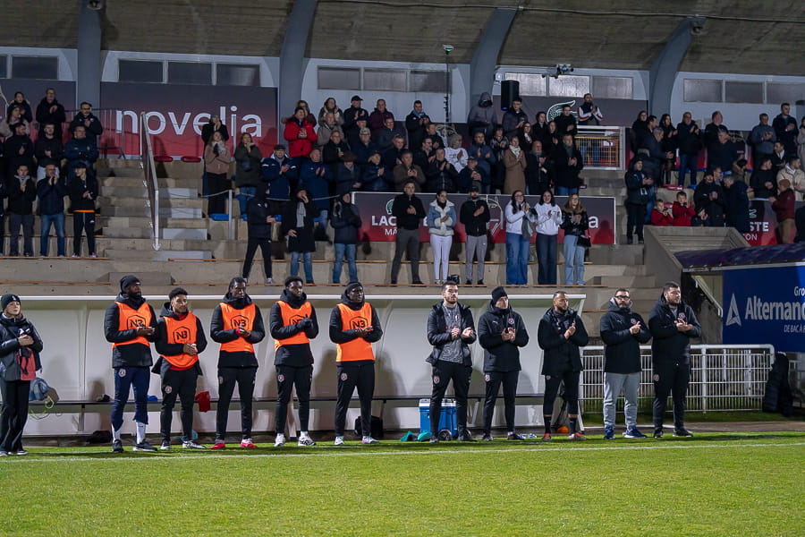 Avant la rencontre, une minute d’applaudissement a été respecté en l’honneur de Bruno Ceyte, l'ancien PDG de Leclerc Mâcon, décédé le 5 janvier dernier. Avec probablement l’une des meilleures affluence au stade Pierre Guerin depuis le début de saison, les débats ont mal commencé pour les mâconnais qui se font surprendre sur corner dès la 12ème minute avec Jibril Othman qui coupe au premier poteau pour tromper Yirango qui ne peut rien faire. Le match est plaisant, les deux équipes sont à l’aise techniquement et peuvent compter sur une pelouse très bien entretenue et qui a résisté au froid de ces dernières semaines. Chaque défense essaye de relancer et sortir proprement. Les mâconnais dominent cette première mi-temps, se créent beaucoup d’occasions mais font preuve d’inefficacité devant le but, 0-1 à la pause.