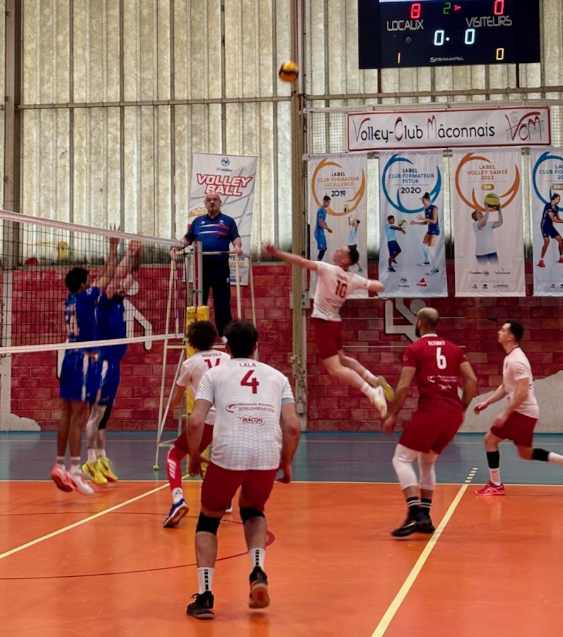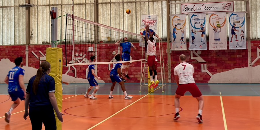 Le début de rencontre a donné le ton. Mâcon arrache le premier set sur le fil (26-24) dans une ambiance déjà survoltée. Villejuif réagit immédiatement. Malgré une belle remontée des locaux après quelques points de retard, les visiteurs s’adjugent la deuxième manche (23-25), avant de confirmer dans le troisième set. Menés deux sets à un, les Mâconnais n’ont pourtant rien lâché.