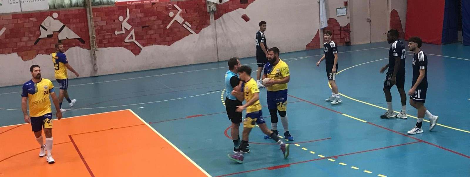 Les Jaunes et Bleus ont trouvé les solutions en attaque et le tableau d'affichage ne comptait jamais plus d'un but d'écart, tantôt en faveur de Mâcon, tantôt en faveur de Vesoul. Les deux équipes rentrent aux vestiaires sur un score de parité 14-14. Le début de 2ème mi-temps est identique, 19-19 à la 44ème minute. Coup de fatigue ou manque de concentration, les Jaunes et Bleus se trouvent désarmés face à des Vésuliens plus agressifs en attaque. Le tableau affiche alors un score de +4 en faveur des visiteurs à la 51ème minute (21-25). Les locaux se reprennent en main. Mâcon se ressaisit mais laisse finalement les 3 points de la victoire à Vesoul sur le score d'un petit but, 28 à 29.
