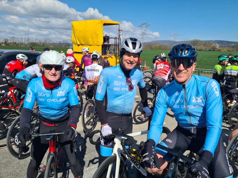 Meillonnas (01) ce dimanche après la pluie, un vent très fort où la prudence était de mise .Denis Charlot, Jean Michel termine dans le peloton et Dominique Bruillot dans l'imbroglio des 2 pelotons non classé.