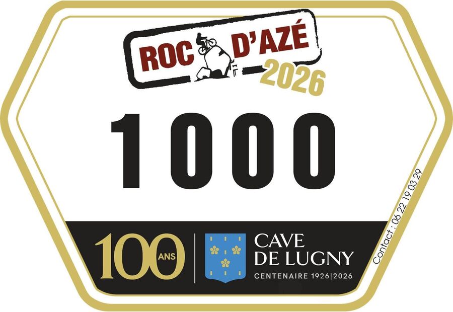 Vous pouvez déjà découvrir la plaque de cadre 2026 réservée aux 1000 premiers inscrits. Le Roc d'Azé 2026, c'est le dimanche 6 septembre 2026, au départ de la Cave de Lugny !
