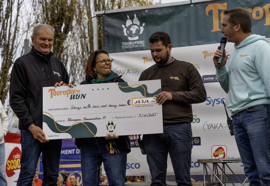 C’est donc un chèque de 12 312,00 € qui a été remis par l’organisation du Touroparc Run, au fond de dotation Touroparc Conservation.