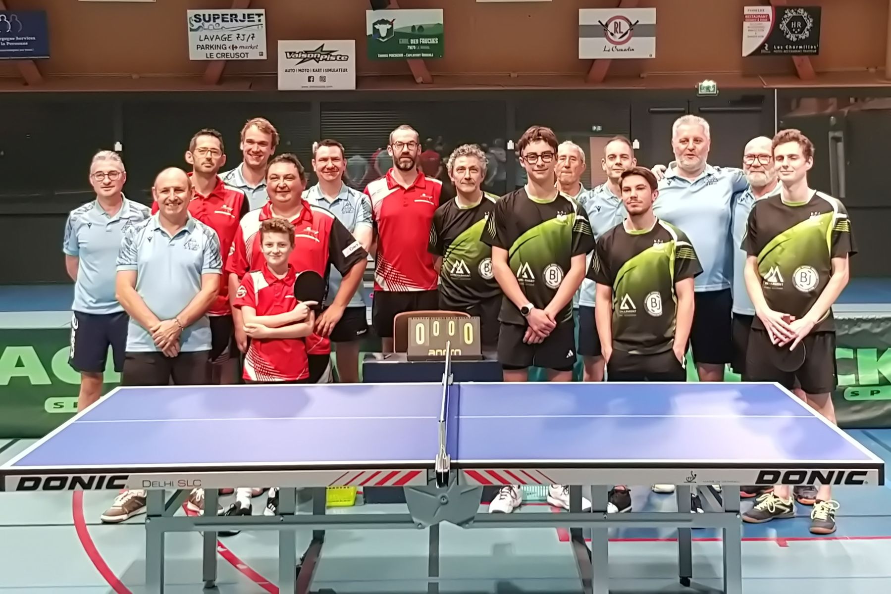 Une rencontre très disputée, des matchs en 4 et 5 sets avec perf à 11 de Maxime Dumont (cl 10) puis perf à 14 de Bertrand Giron (cl 11). Sans pouvoir se départager, les deux équipes resteront à égalité du début jusqu’à la fin.