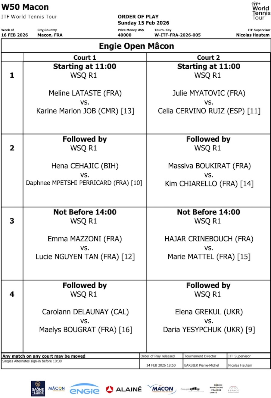 Premier tour des qualifications ce jour ! 32 joueuses en lice à partir de 11h. 16 rejoueront lundi  pour le second tour, et les 8 meilleures intégreront le tableau final.