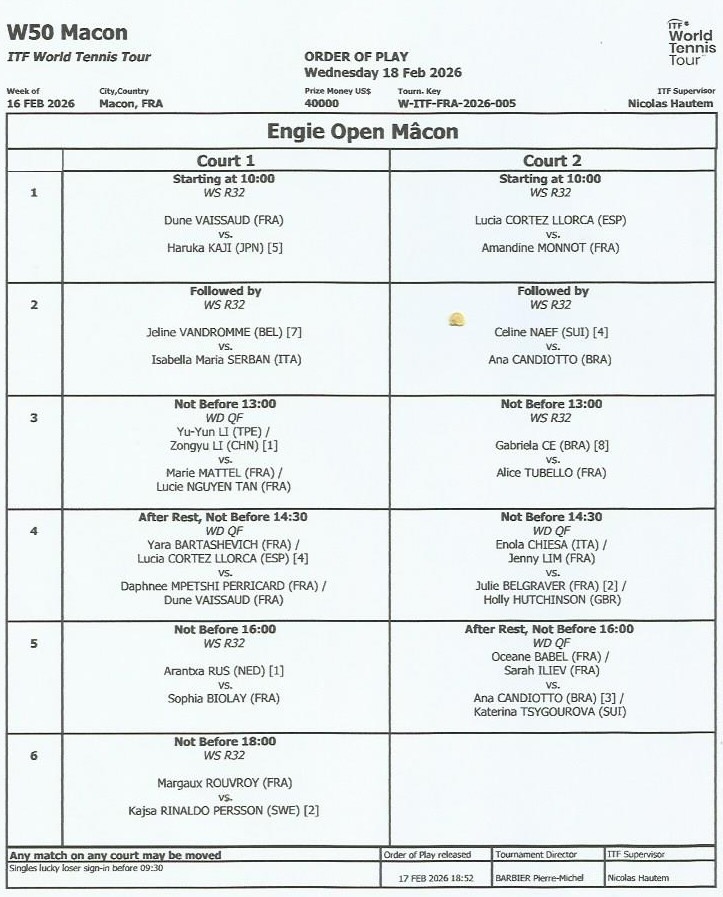 Demain 7 simples et 4 doubles à suivre à partir de 10h.