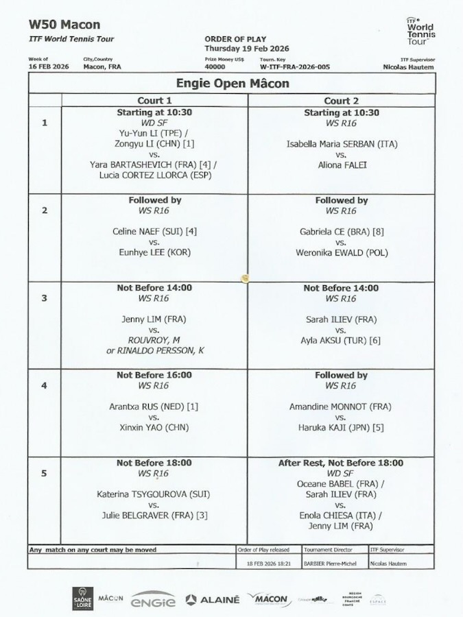 Nouvelle journée prometteuse aujourd'hui, avec des matchs à partir de 10 h 30. Retrouvez le programme ci-dessous !