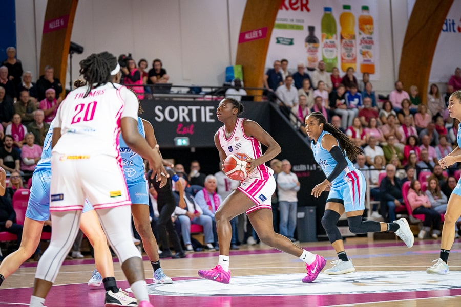 Le match démarre pourtant avec beaucoup d’intensité et d’envie des deux côtés mais également beaucoup de maladresses sous le panier. Les pinkies sont menées 5-9 après 5 minutes de jeu. Enfin, l’américaine Shakayla Thomas, dans sa position favorite, trouve un shoot en reculant et marque, 7-9 après 6 minutes. N Deyne Maye Toure, arrivée cet été, est bien présente au rebond sur la tentative manqué à 3 points de Drame, également nouvelle recrue,  9-13 (7’). Score à l’issue de ce premier quart-temps, 17-21.