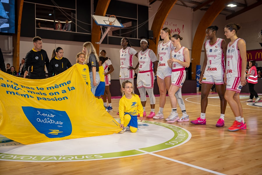C’est le grand soir, le CBBS version 2025-2026 foulait pour la première fois, lors d’un match officiel, son nouveau parquet dans le cosec fraichement rénové. Avec un gros turnover à l’intersaison, de nouveaux visages, dans les rangs des pinkies, se présentaient face au public charnaysien. Notamment Sara Chevaugeon et Nukiua Mayo qui intègrent le 5 majeurs au début de la rencontre aux côtés de Coralie Chabrier, Mariama Daramy et Shakayla Thomas.
